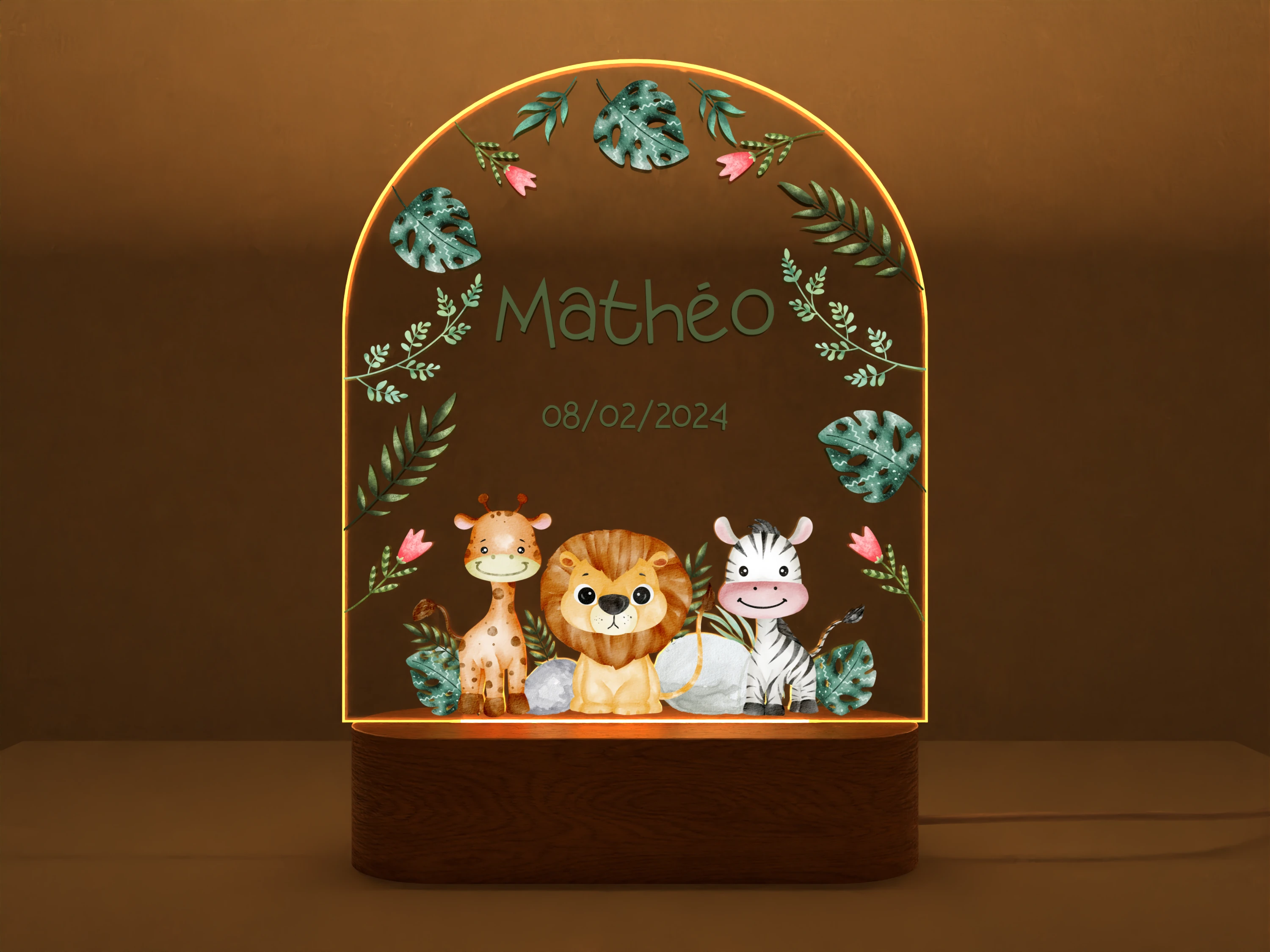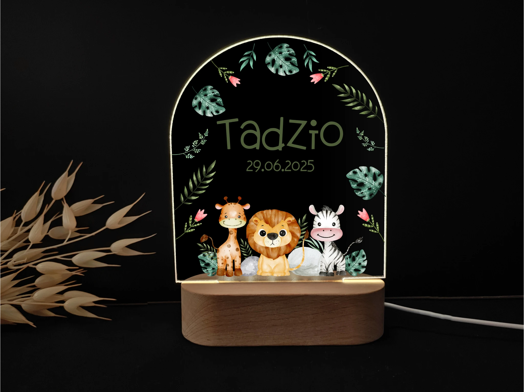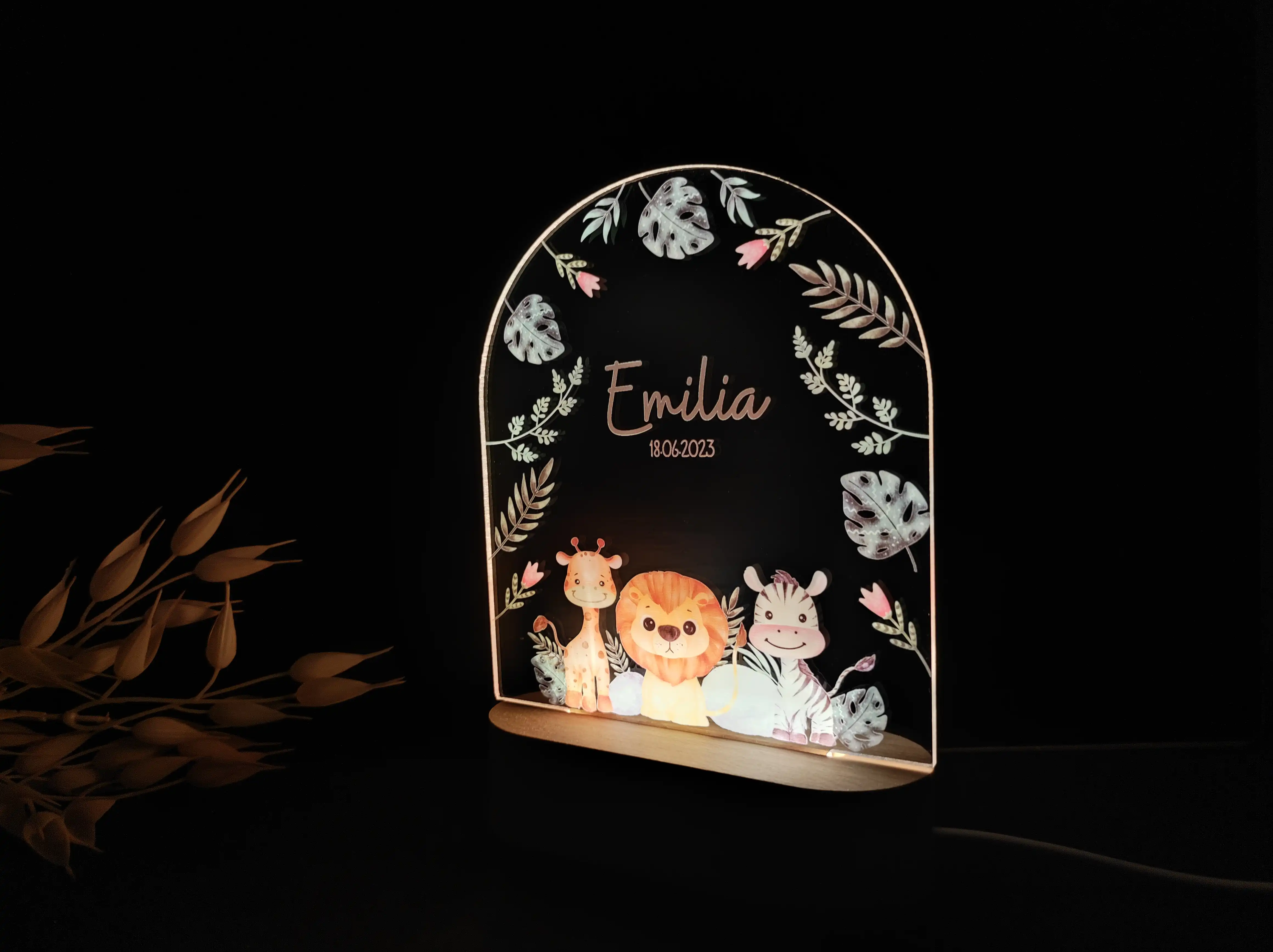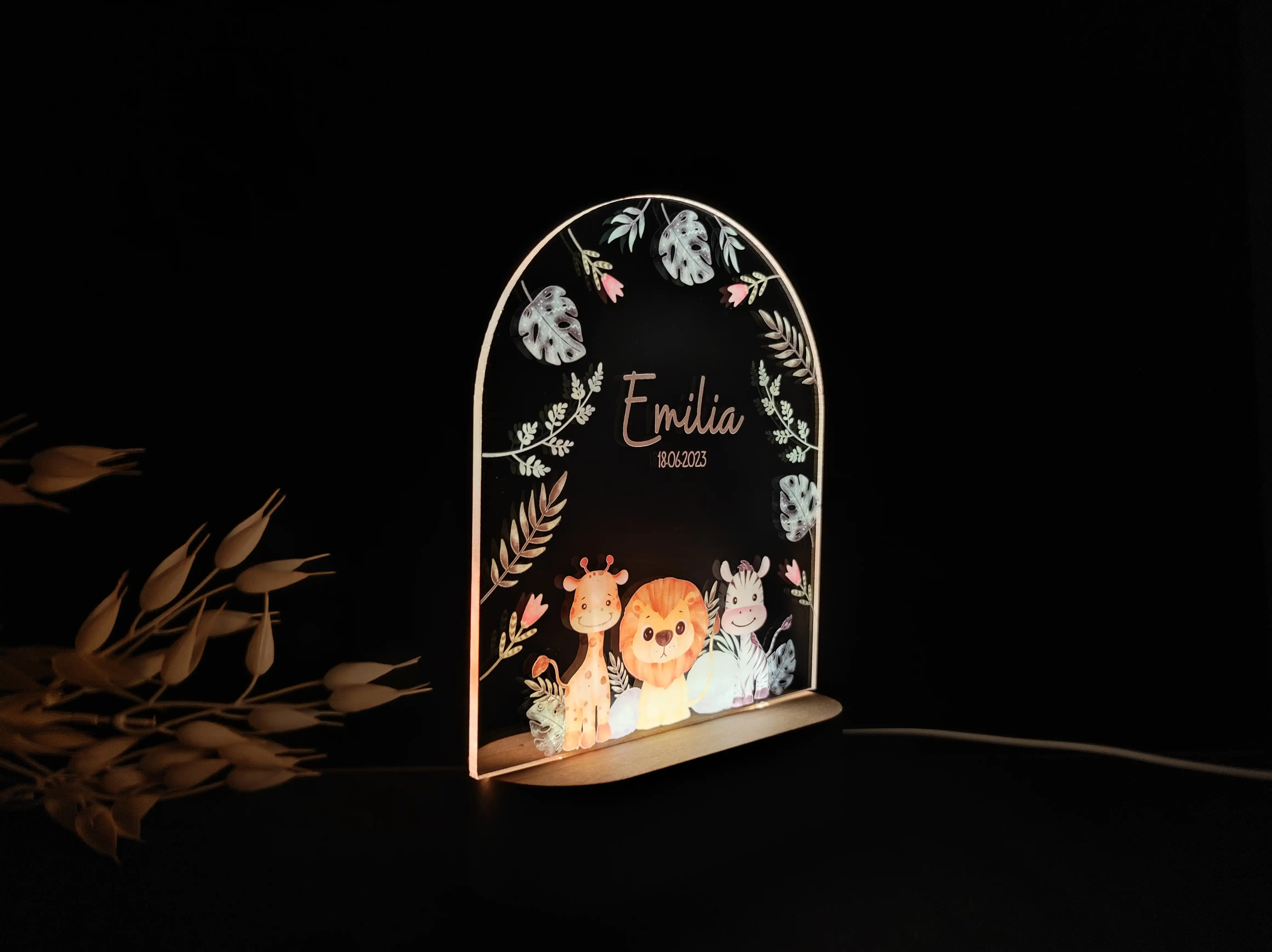 Personalizowana lampka nocna LED „Dżungla” – Egzotyczna dekoracja do pokoju dziecka