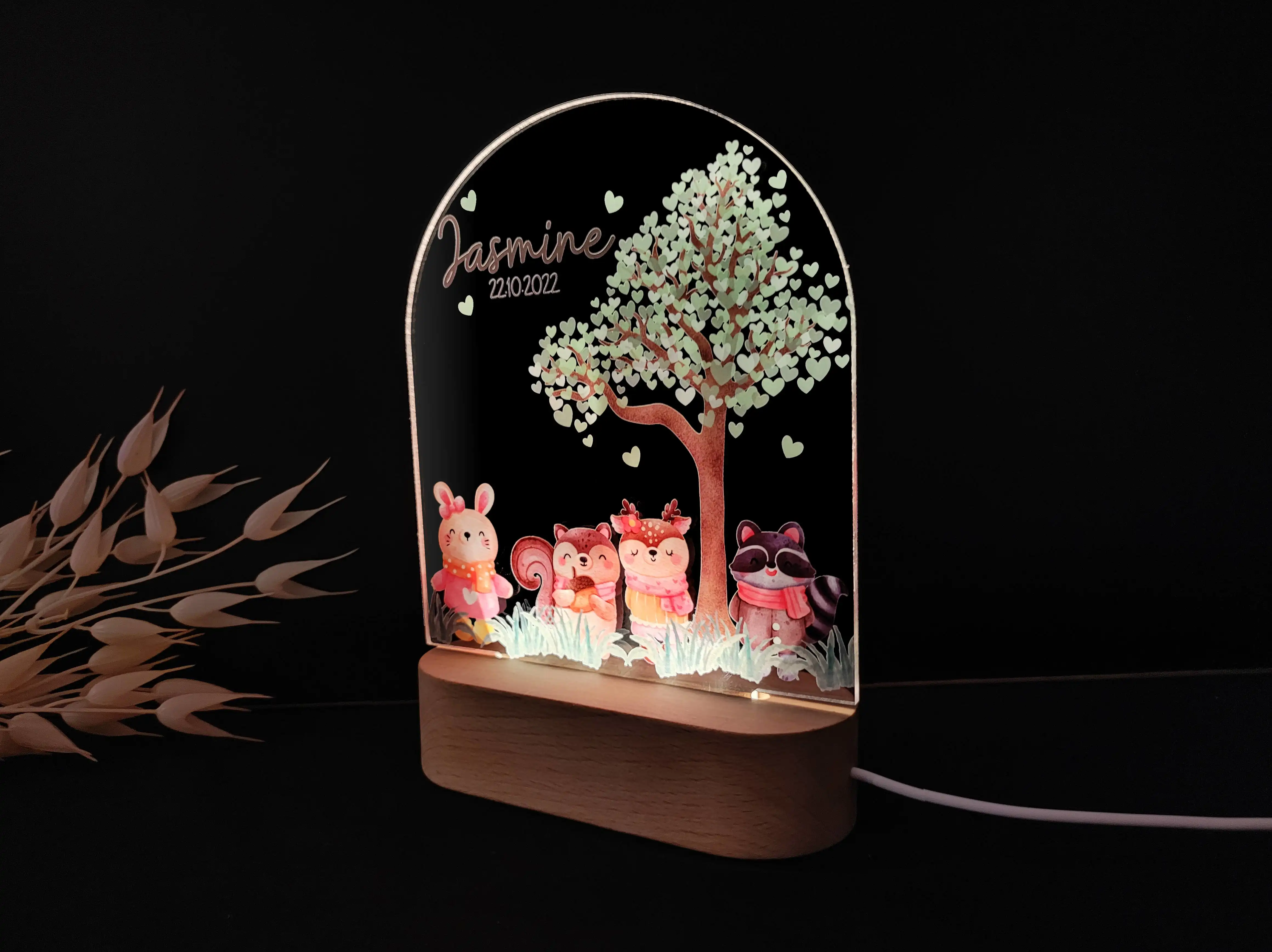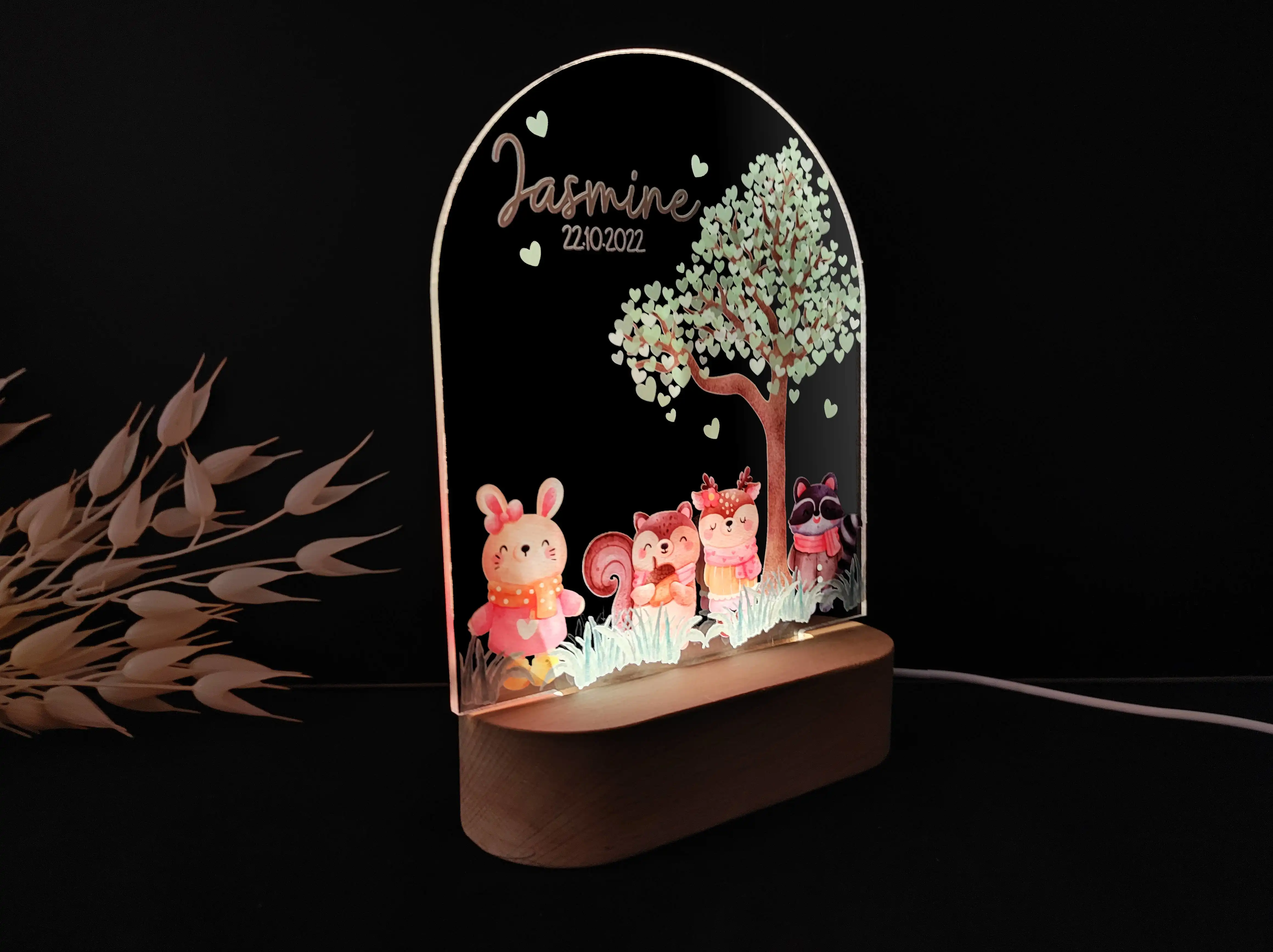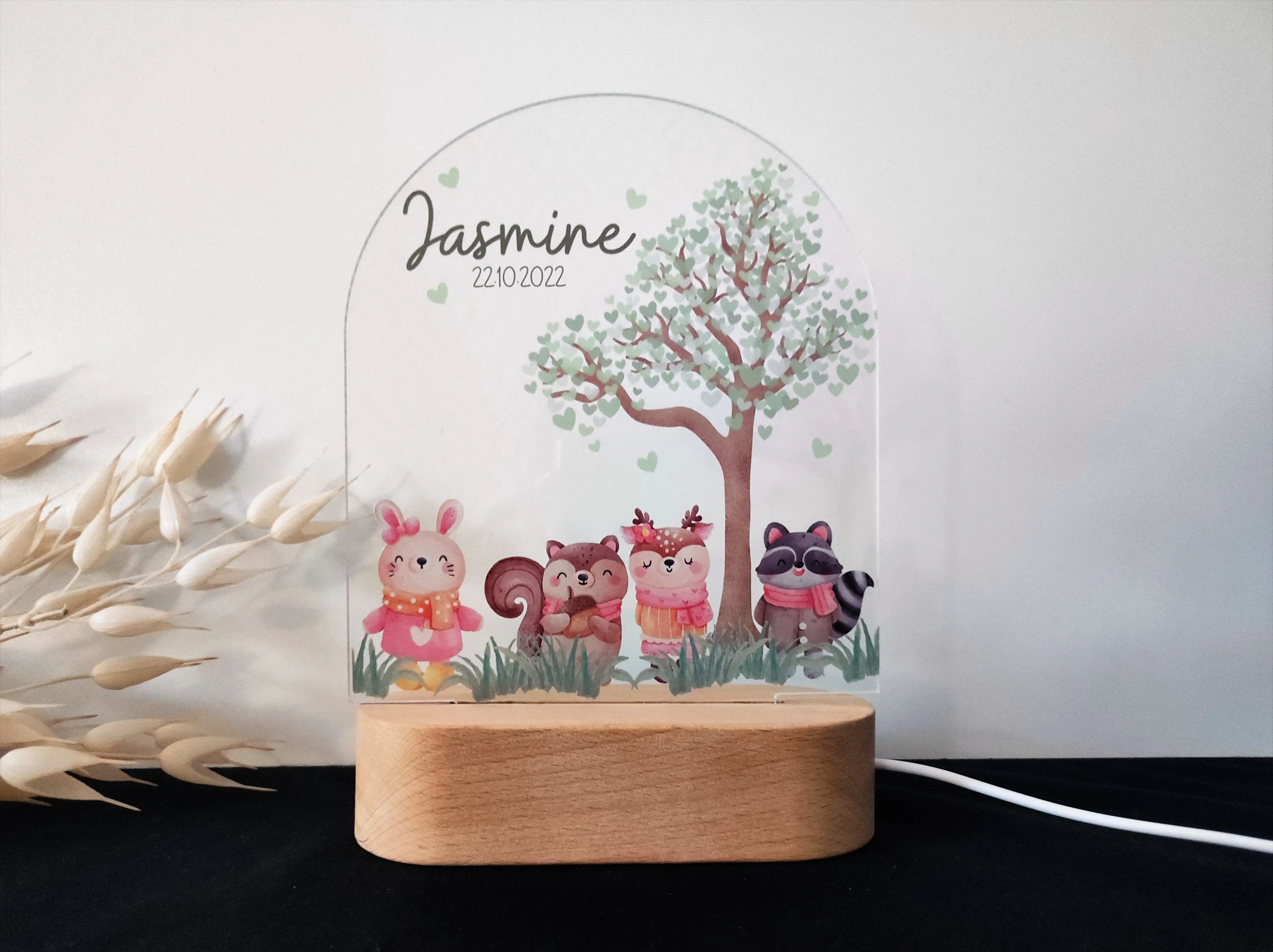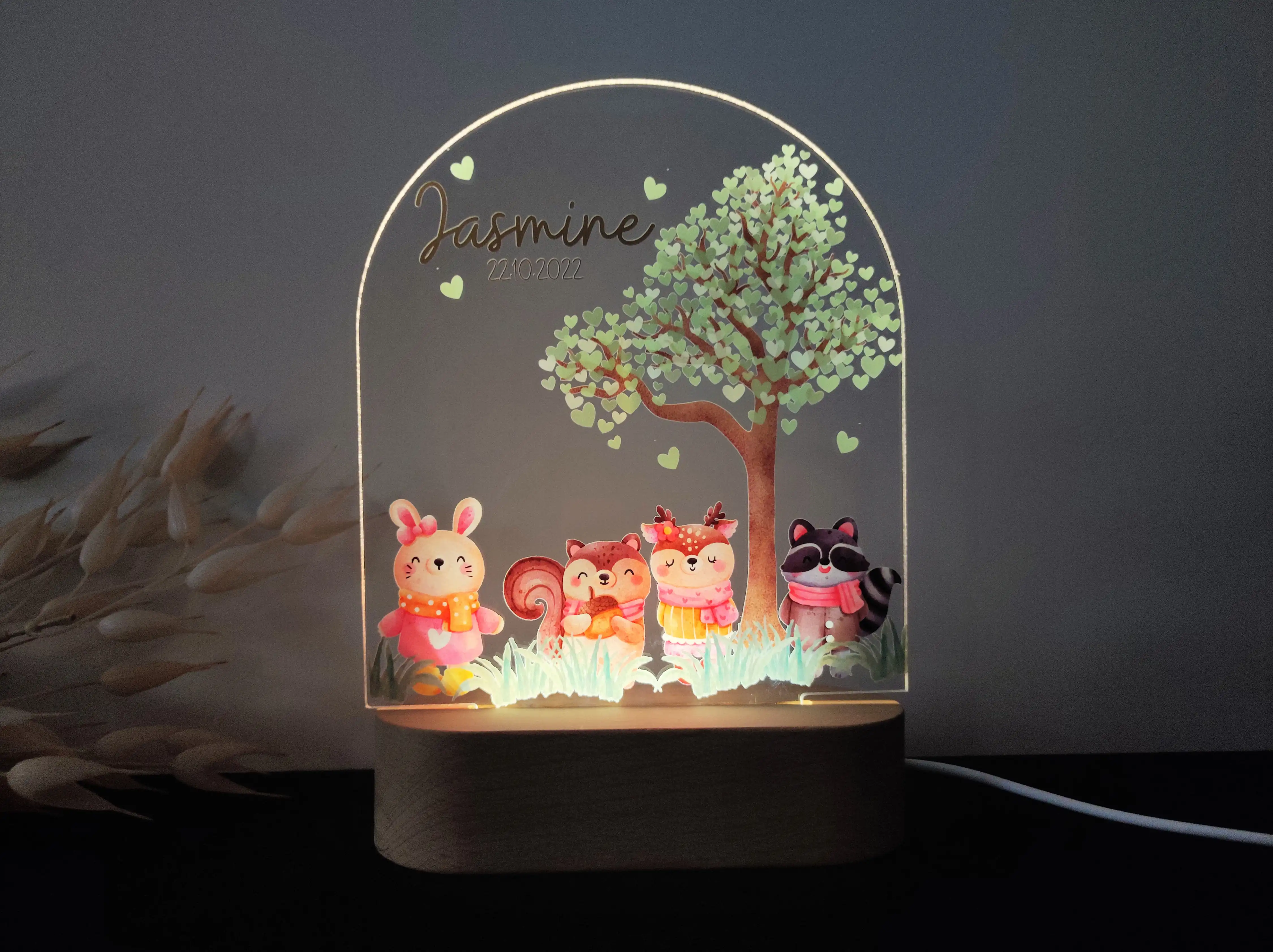 Personalizowana lampka nocna LED „Leśne zwierzątka” – Magiczna dekoracja do pokoju dziecka