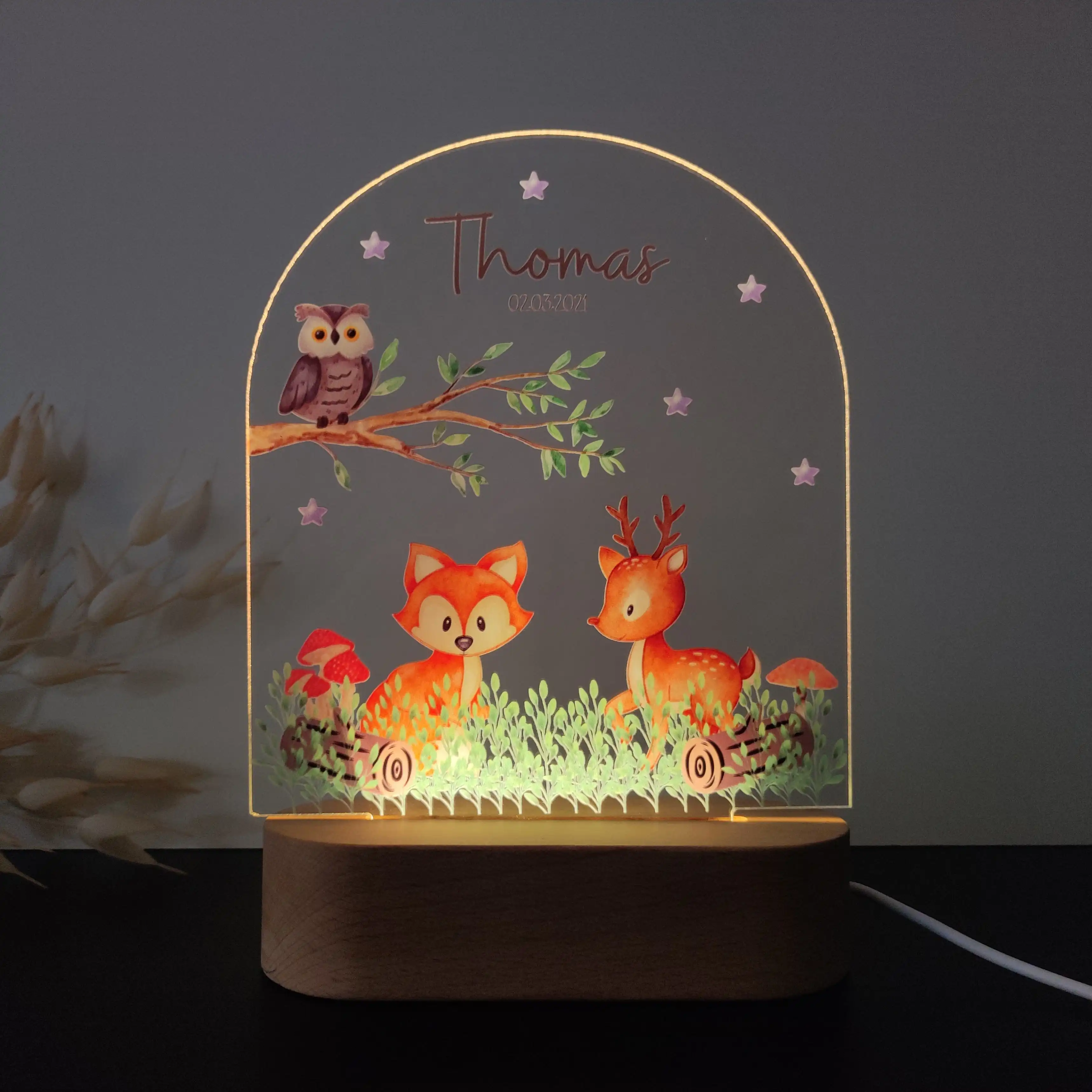 Personalizowana lampka nocna LED „Na polance” – Urocza dekoracja pokoju dziecka
