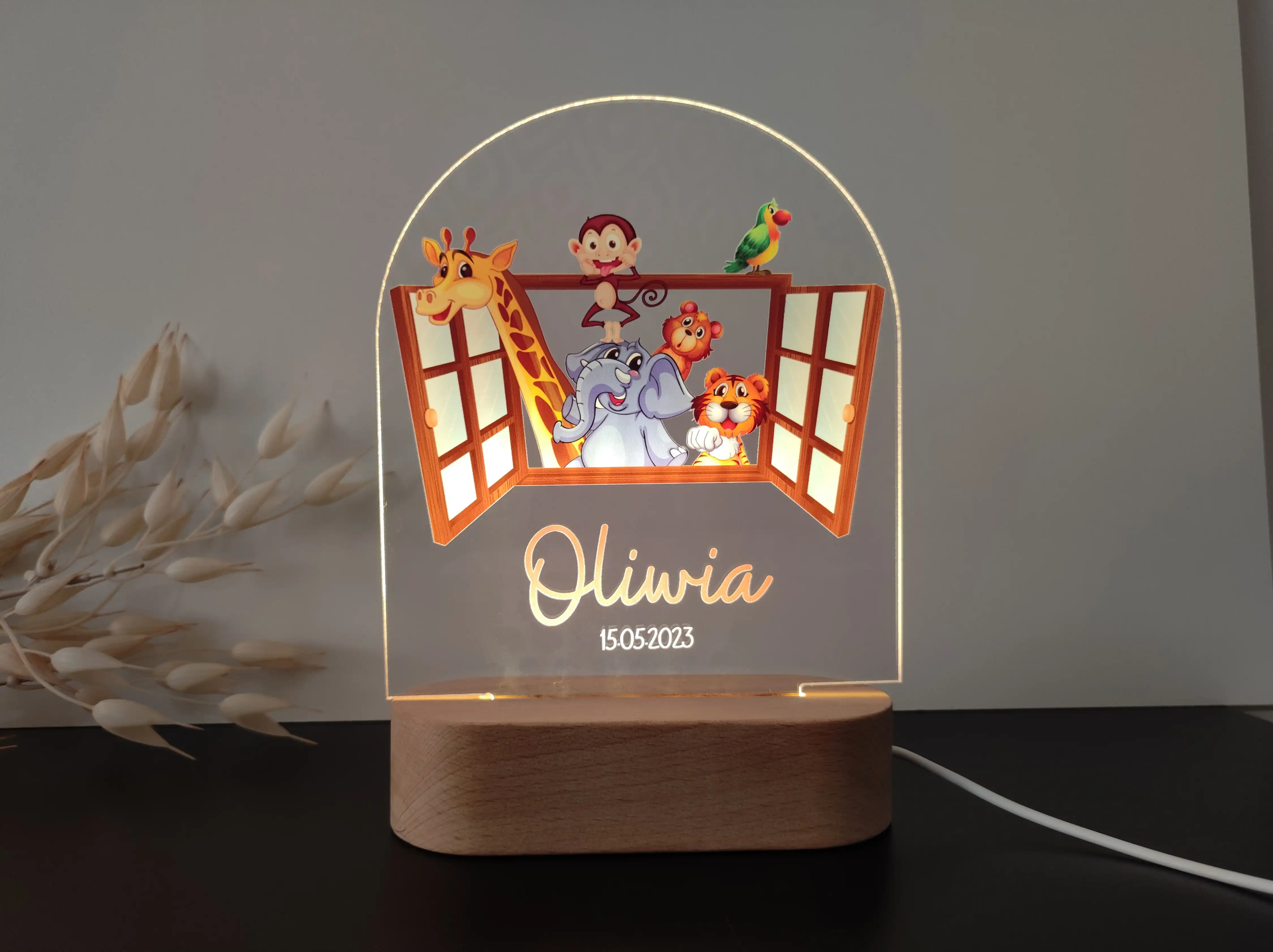 Lampka LED „Okienko” to urocza dekoracja przedstawiająca motyw okienka, która wprowadzi przytulny nastrój do pokoju dziecka. Dzięki możliwości personalizacji imieniem dziecka oraz dodania daty lub dedykacji, staje się nie tylko praktycznym źródłem światła, ale także unikatową ozdobą i niezapomnianym prezentem.