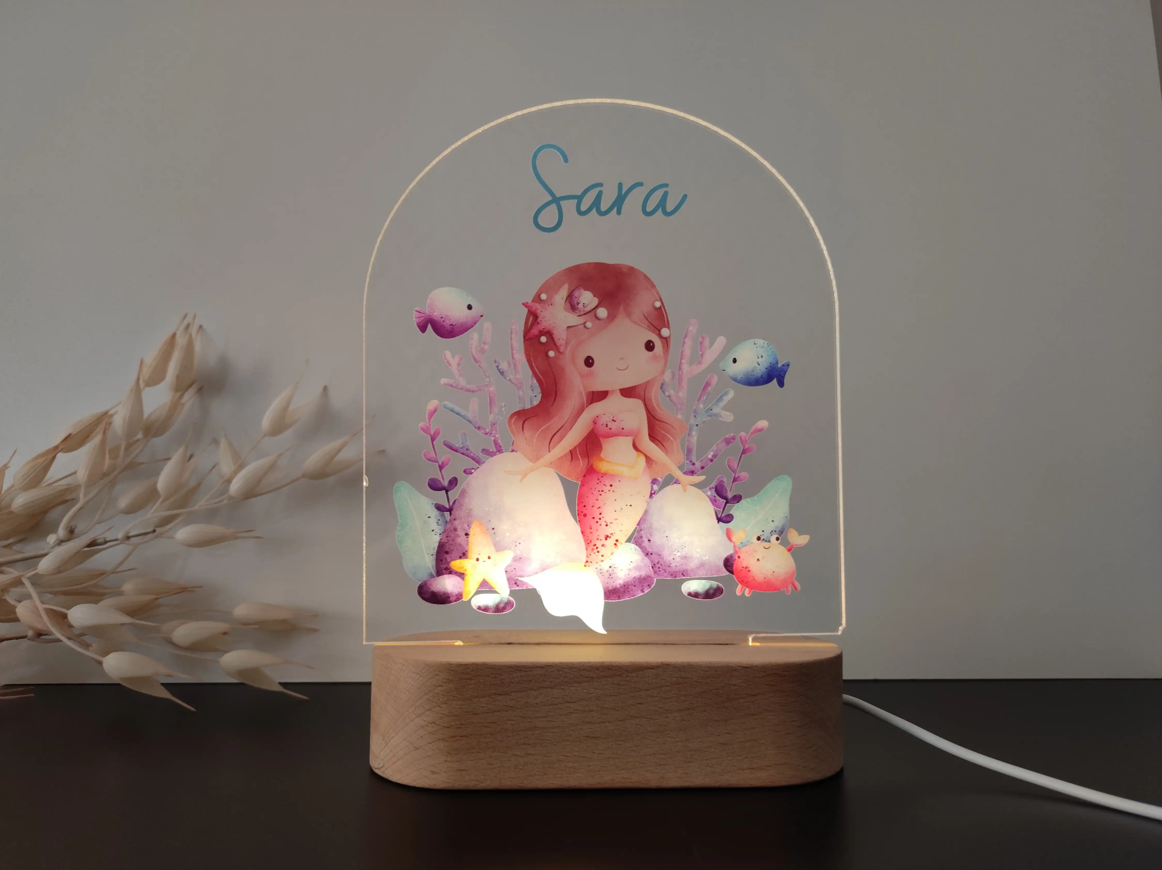 Personalizowana lampka nocna LED „Syrenka” – Magiczna dekoracja pokoju dziecka