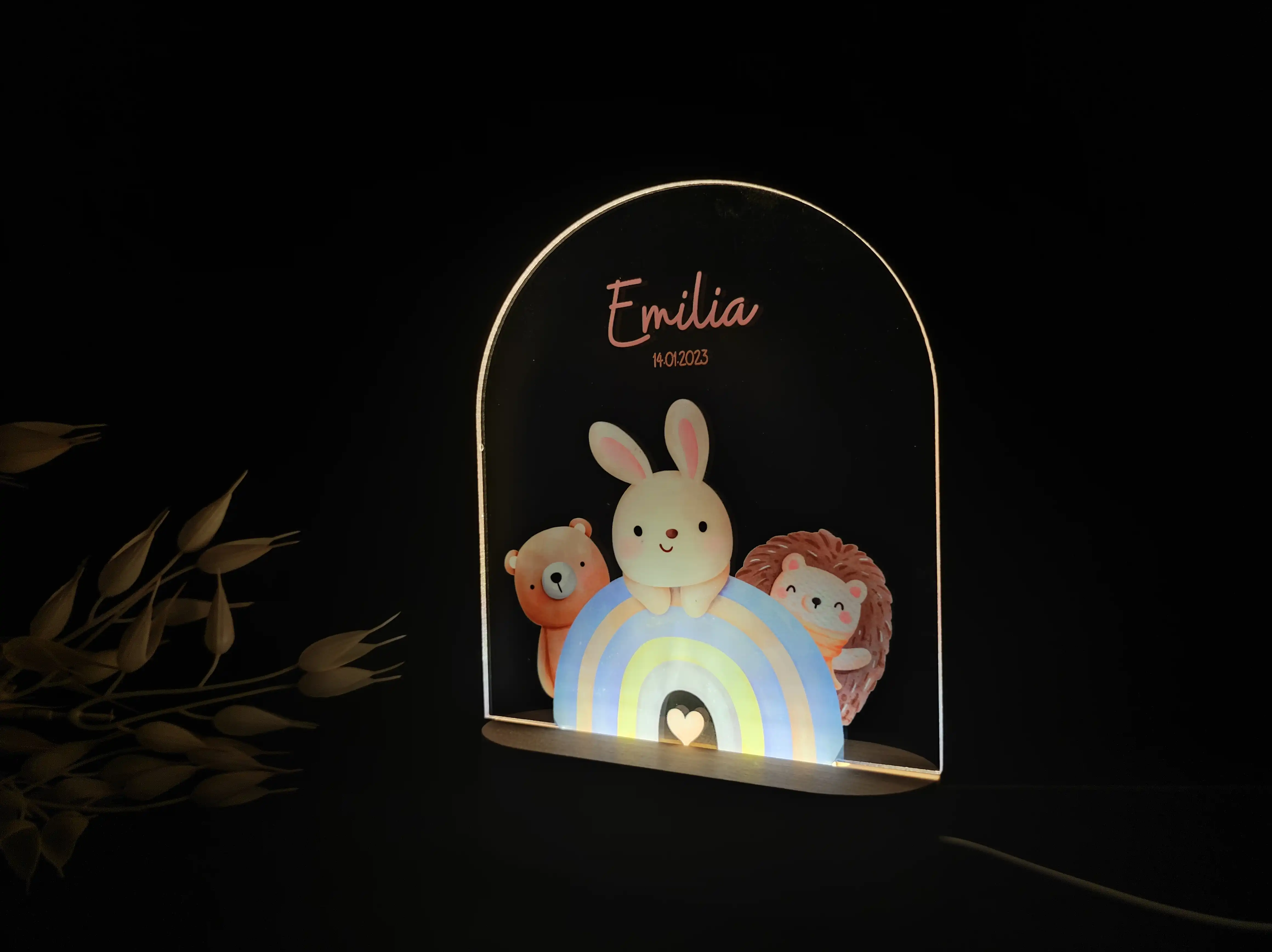 Zwierzątka na tęczy - Personalizowana dziecięca lampka nocna LED