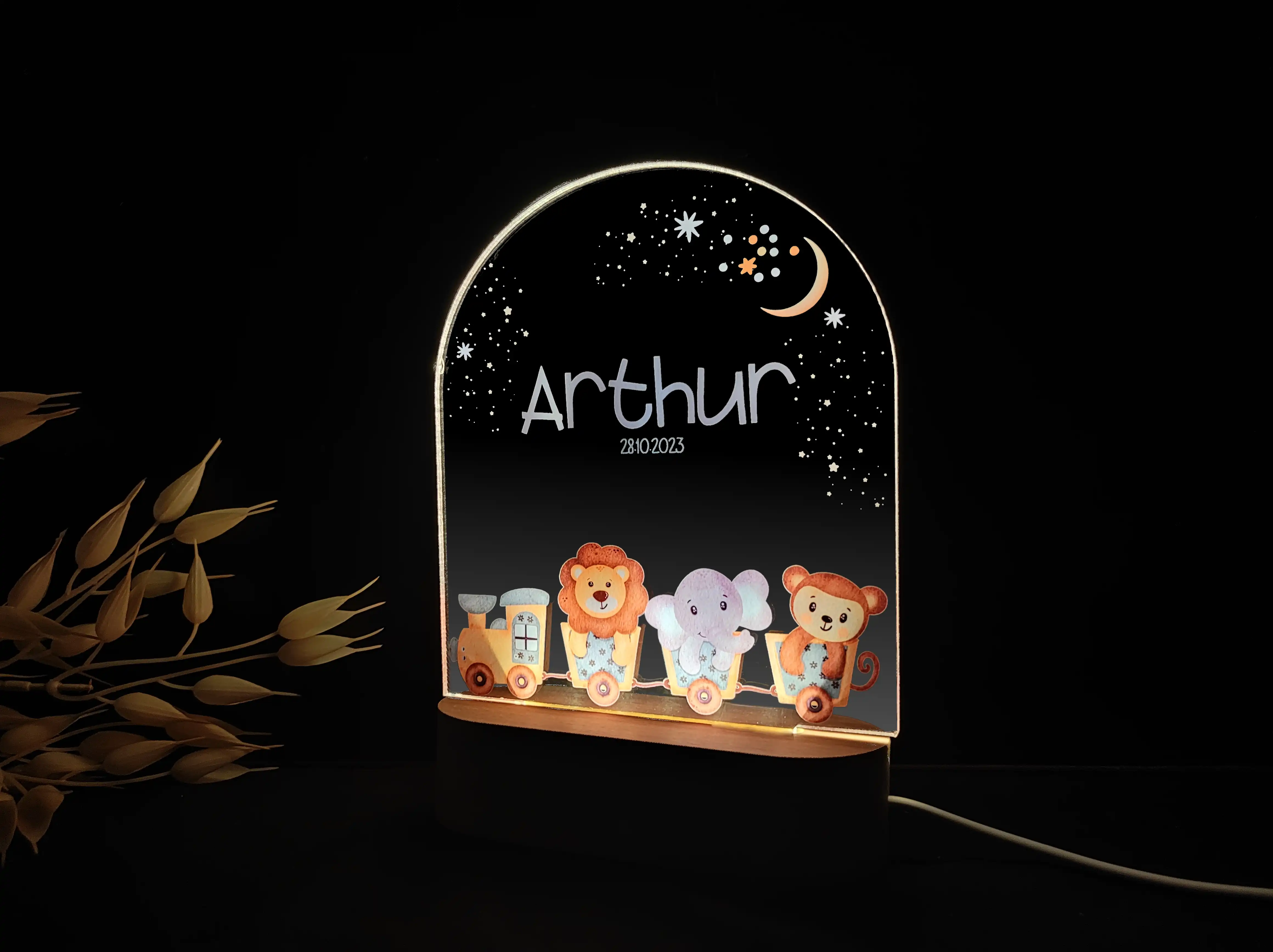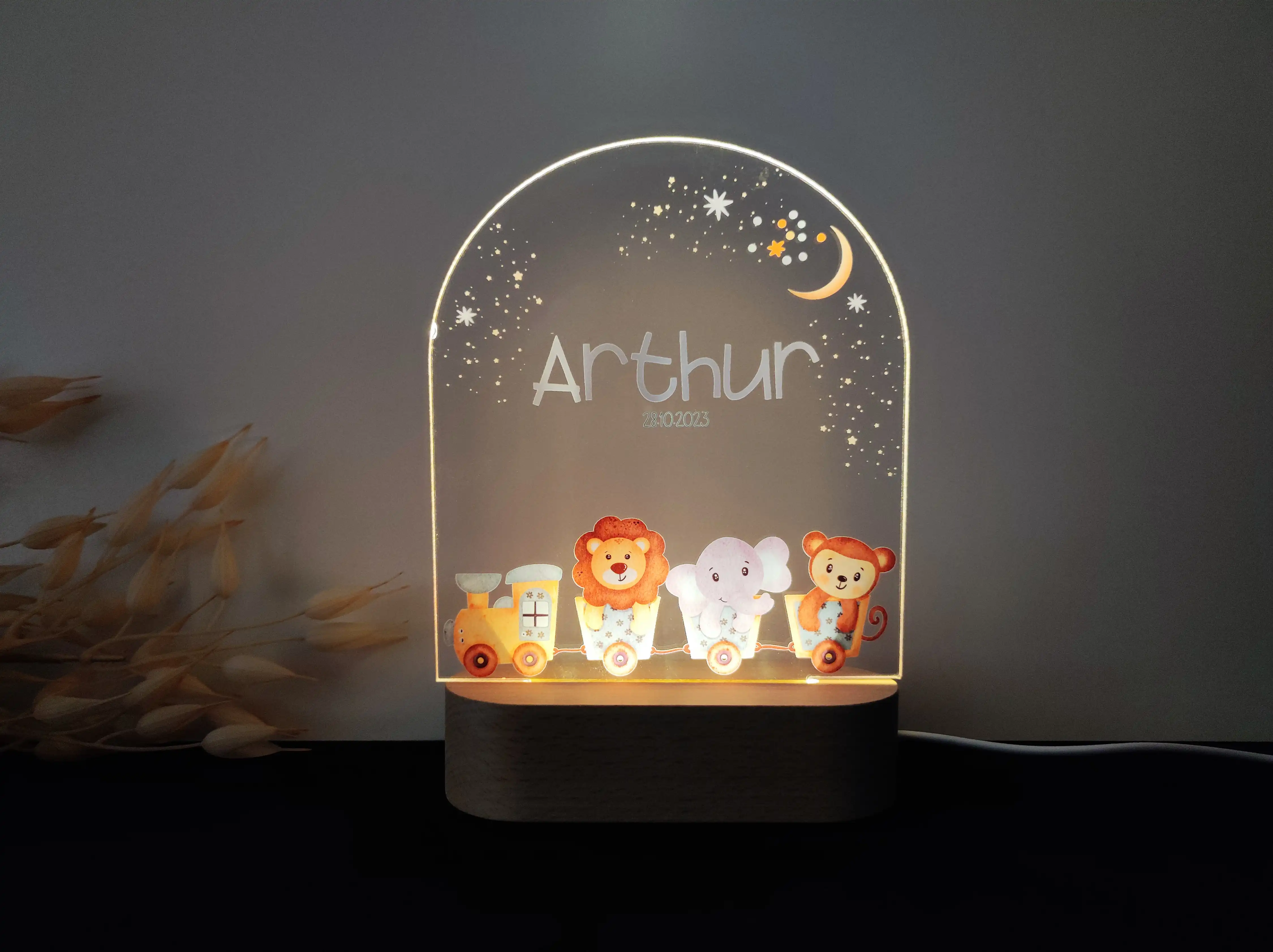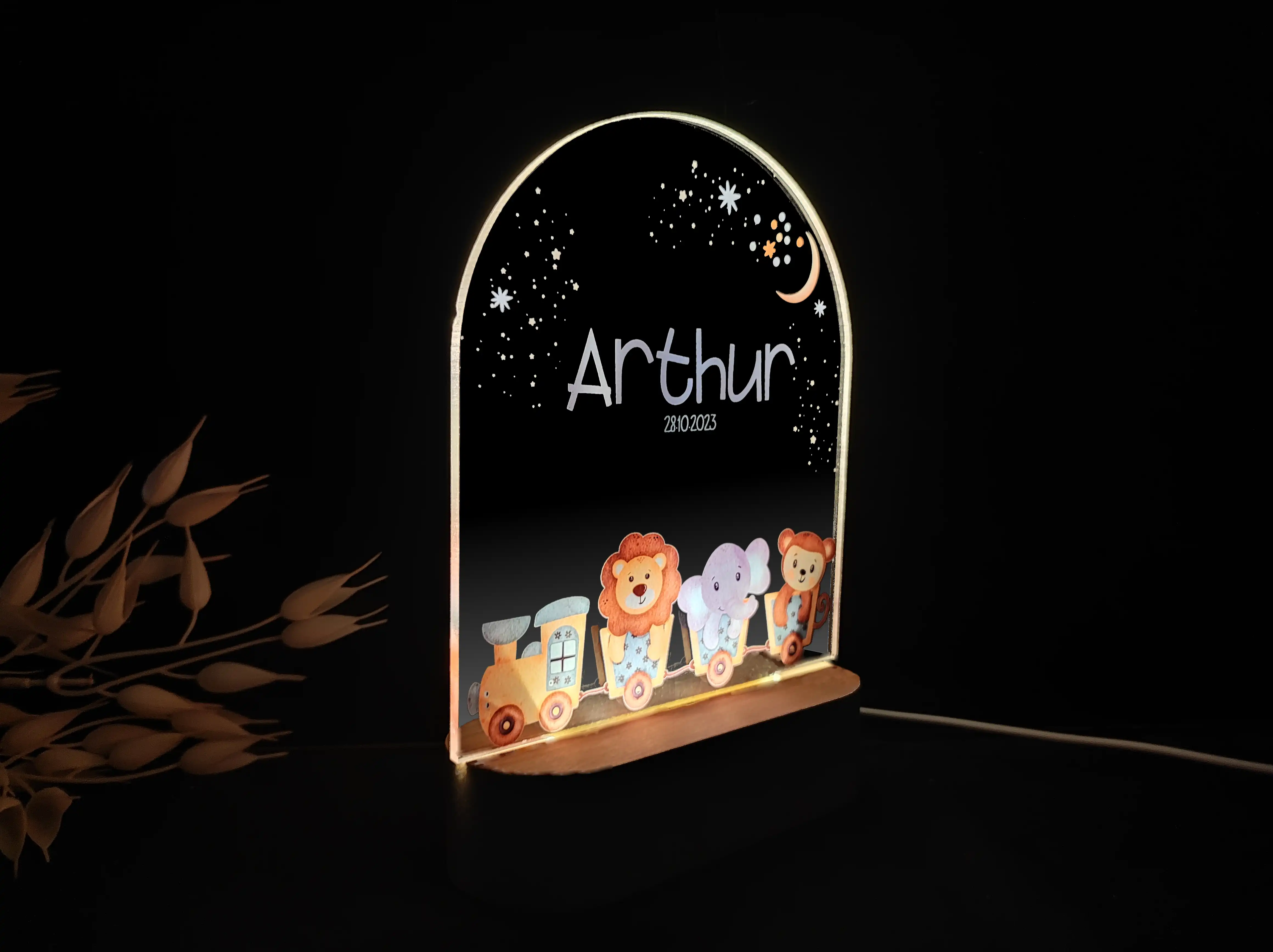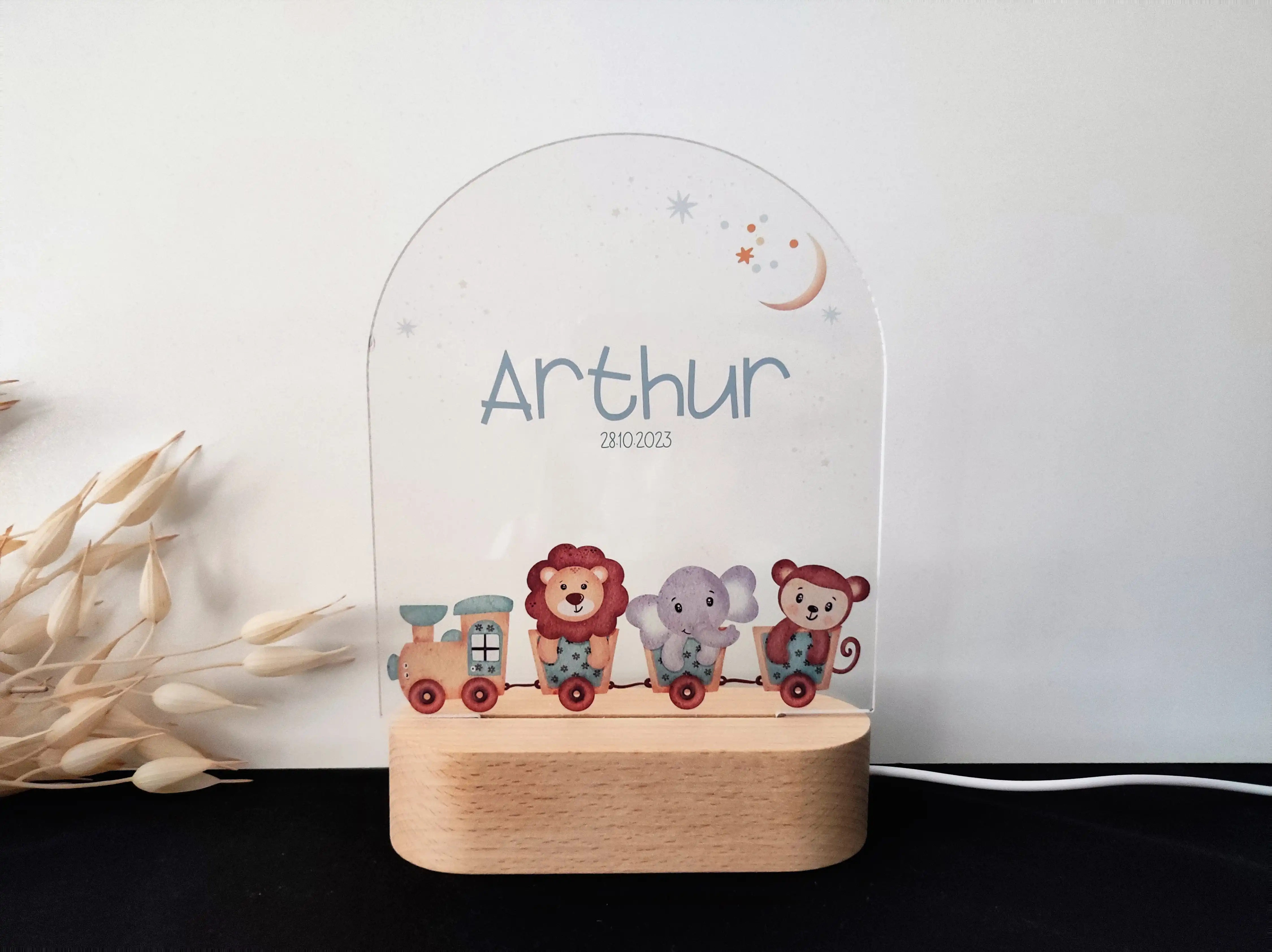 Personalizowana lampka nocna LED „Zwierzątka w pociągu” – Radosna dekoracja i prezent dla dziecka