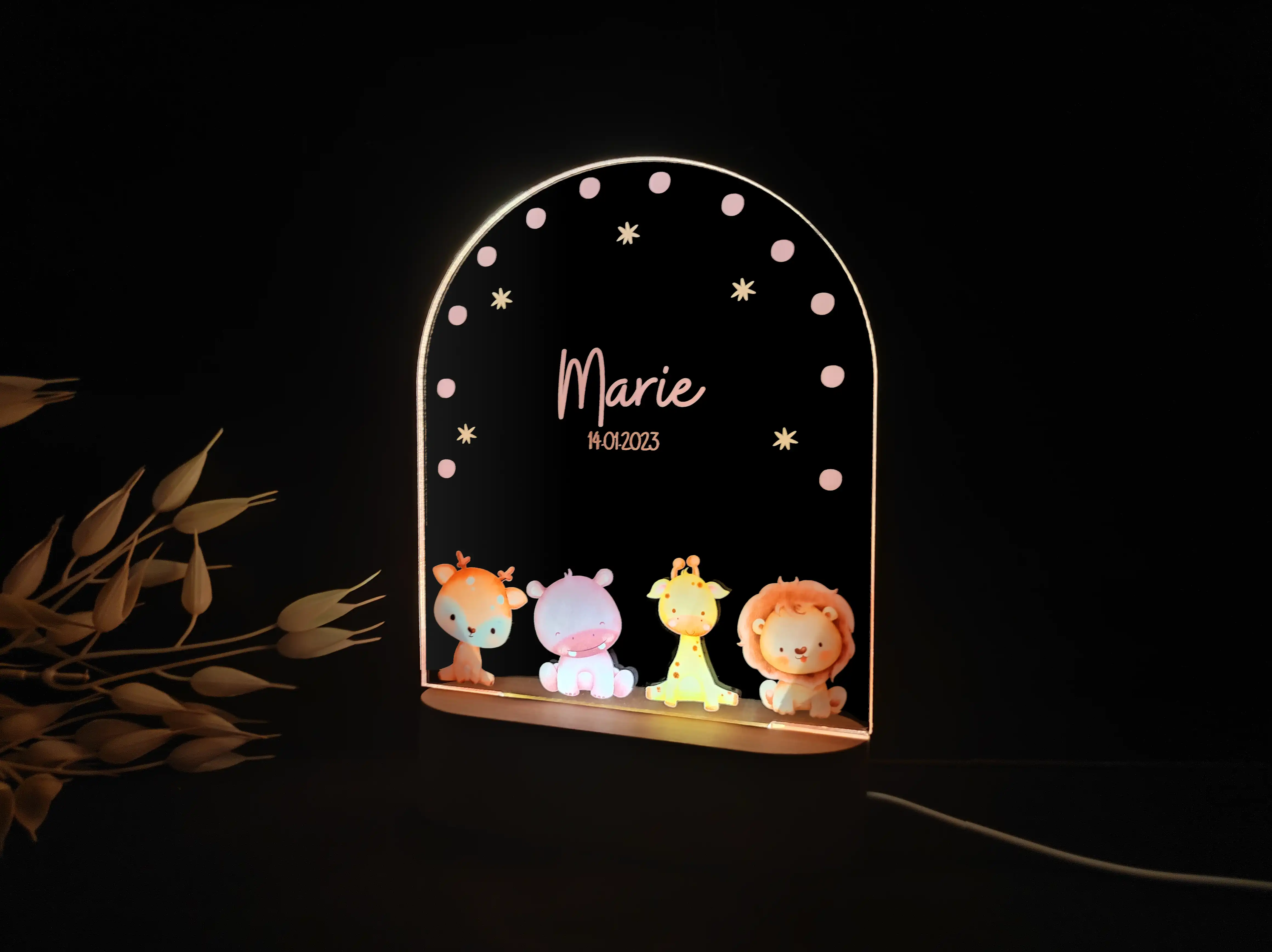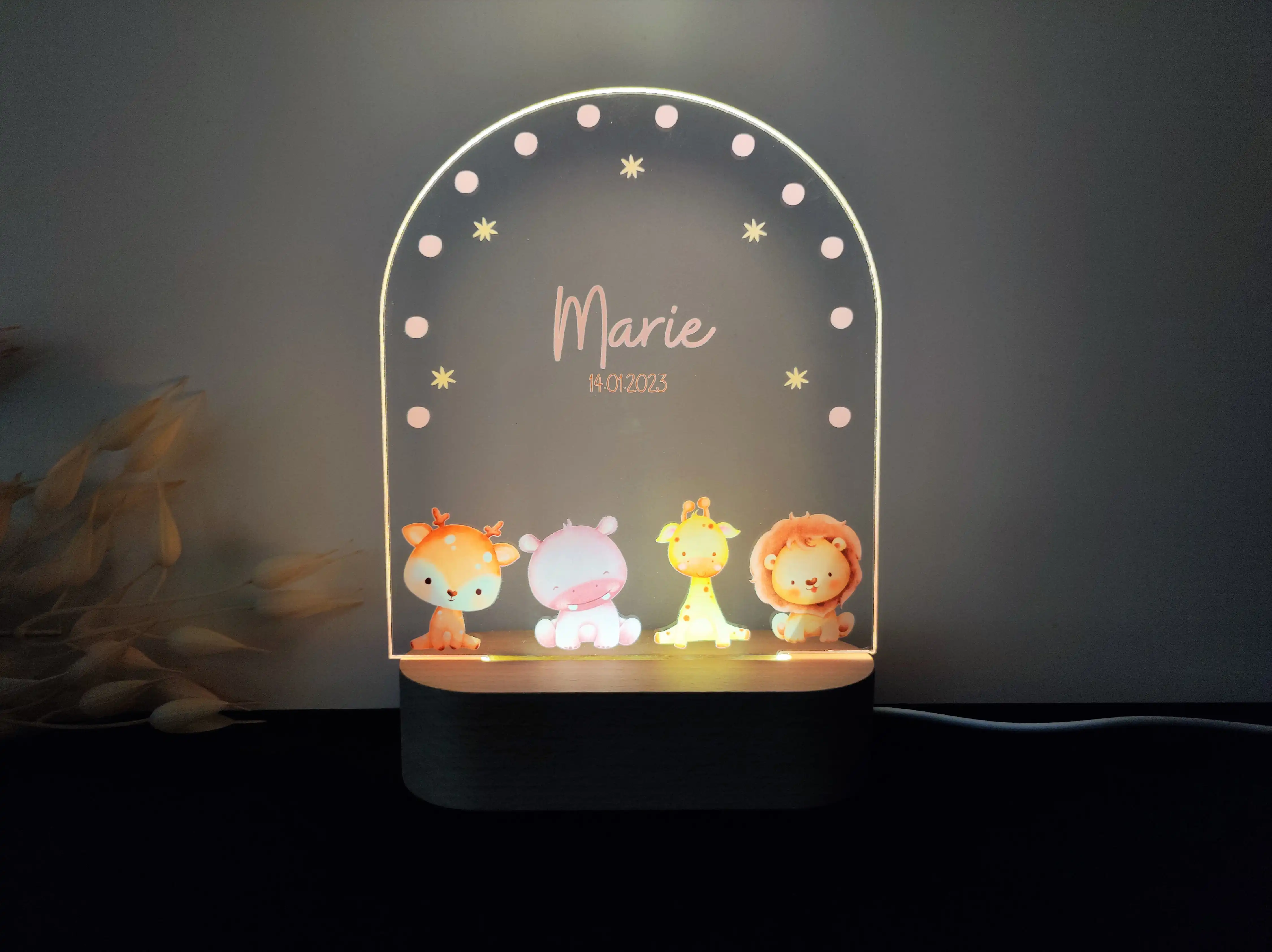 Personalizowana lampka nocna LED „Zwierzątka z ZOO” – Egzotyczna przygoda w pokoju dziecka