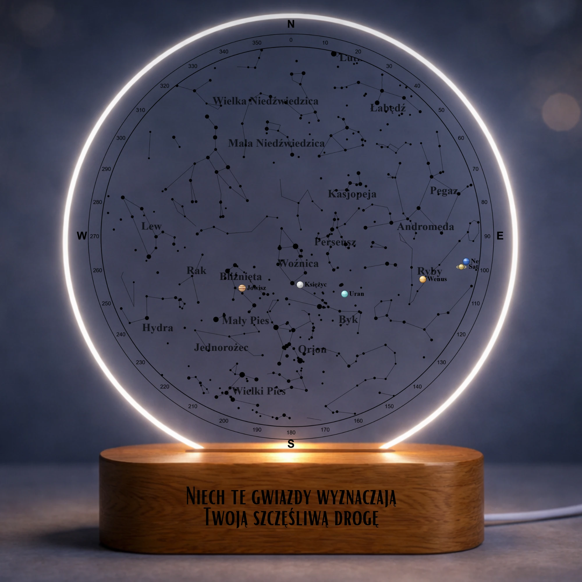 - Wyjątkowość – każda lampa to jedyny w swoim rodzaju projekt – nie znajdziesz dwóch identycznych map nieba.