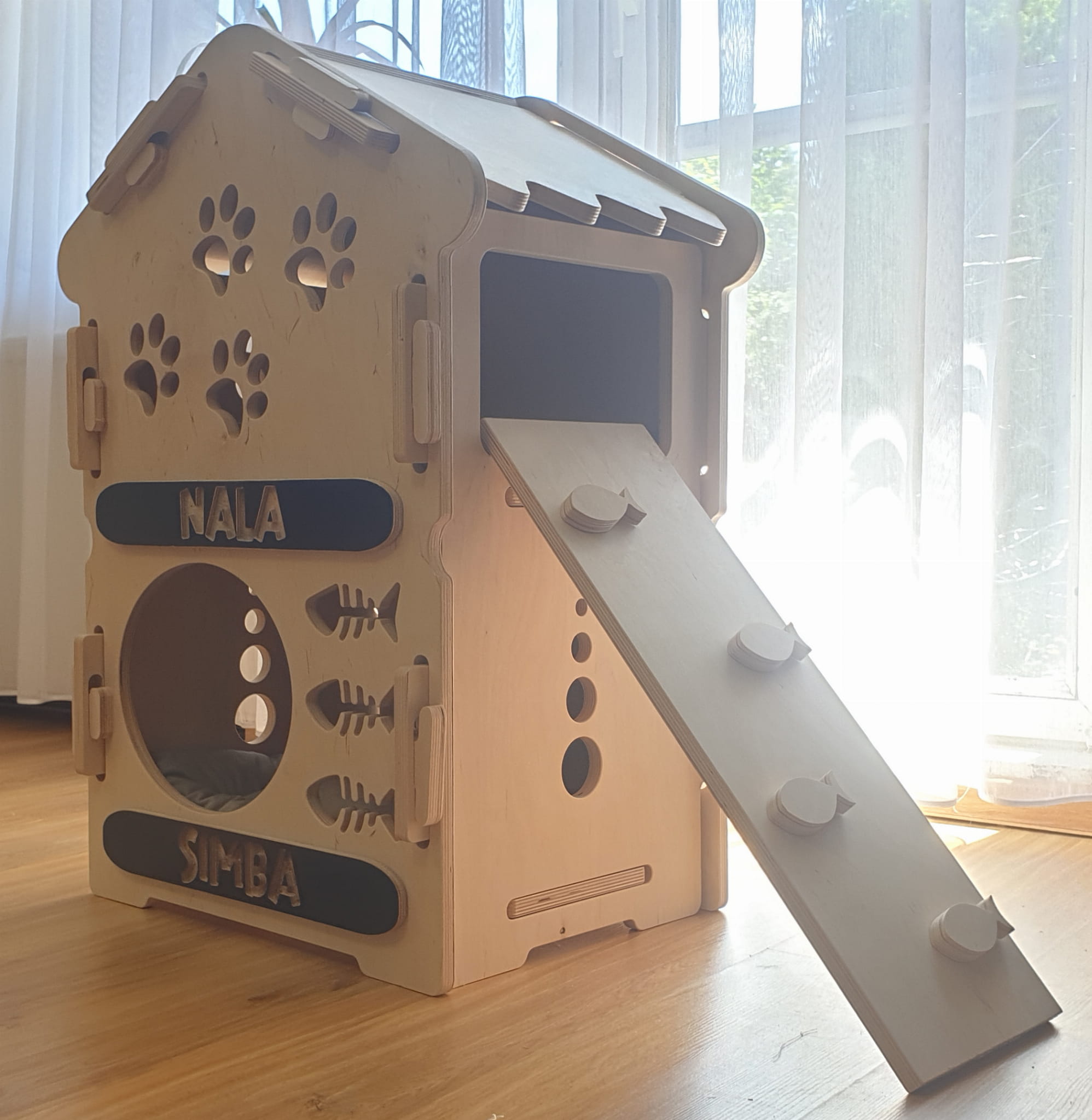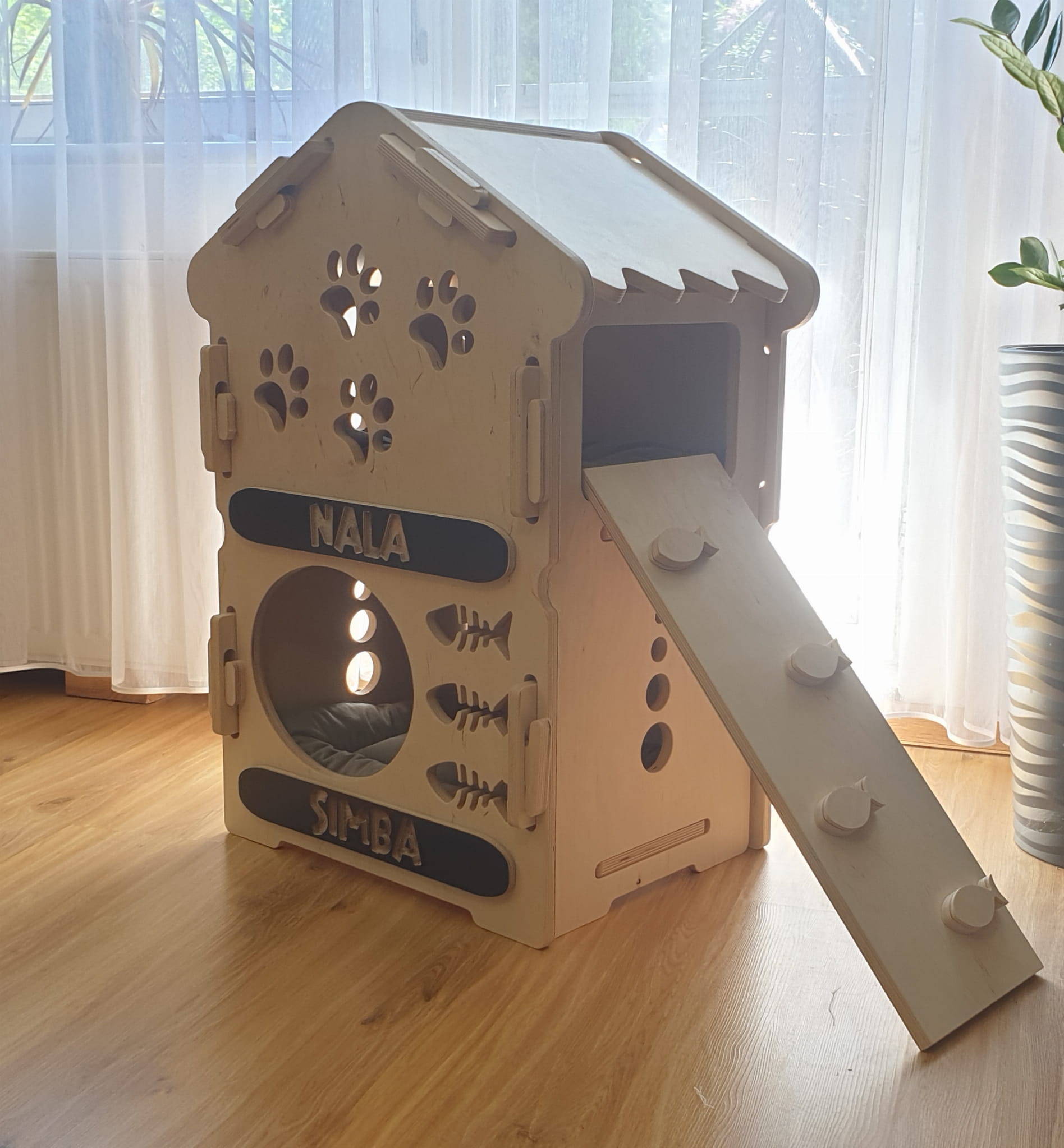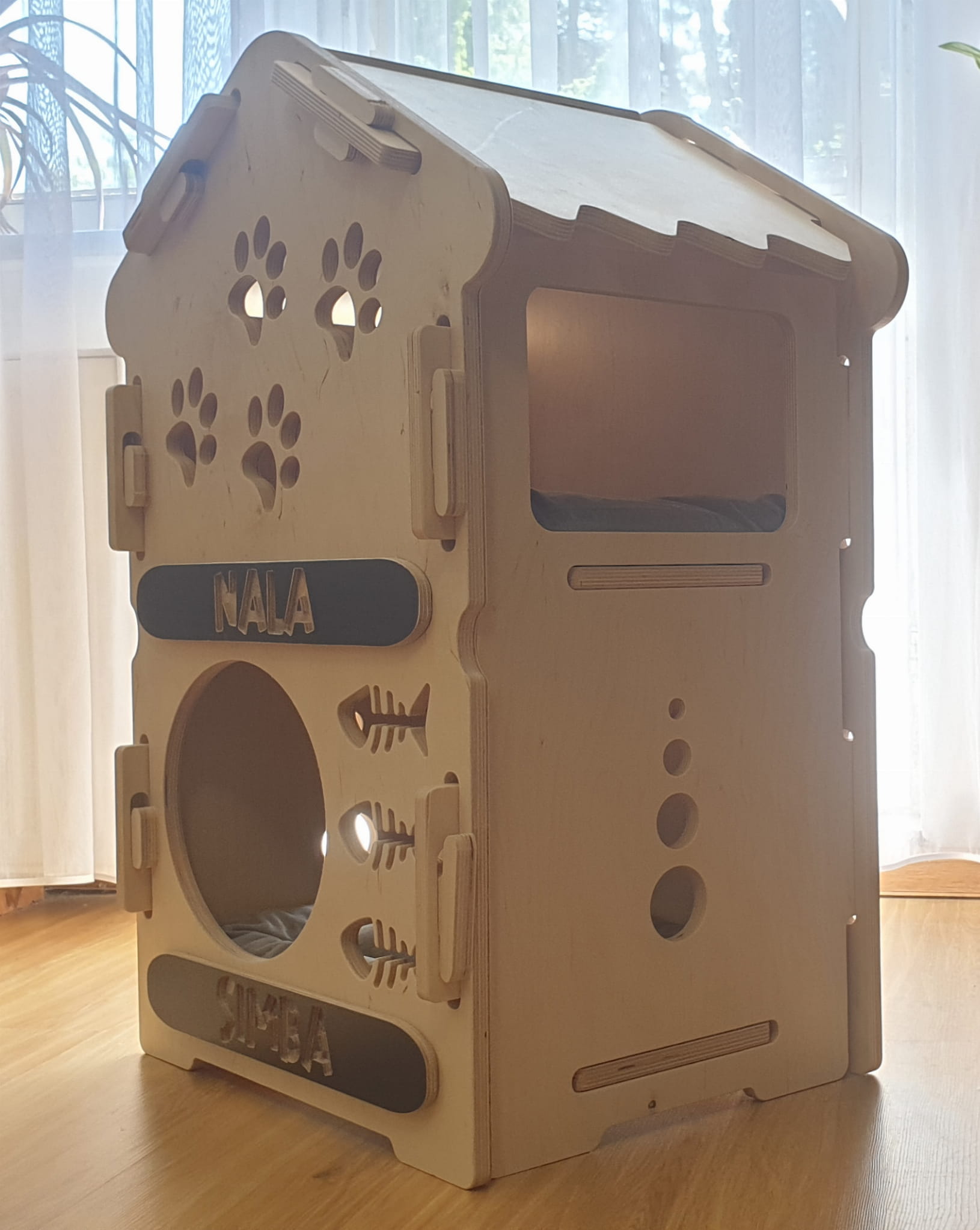 Dostosuj Drewniany Piętrowy Dom dla Psa, Kota czy Królika do potrzeb swojego zwierzaka, nadając mu indywidualny charakter. Piętrowe Drewniane Domki dla Zwierząt są nie tylko funkcjonalne, ale także estetyczne, dzięki czemu możesz stworzyć harmonijną przestrzeń dla siebie i swojego pupila. Dodaj personalizację, nadając domkowi imię Twojego zwierzaka, aby uczynić go jeszcze bardziej wyjątkowym!