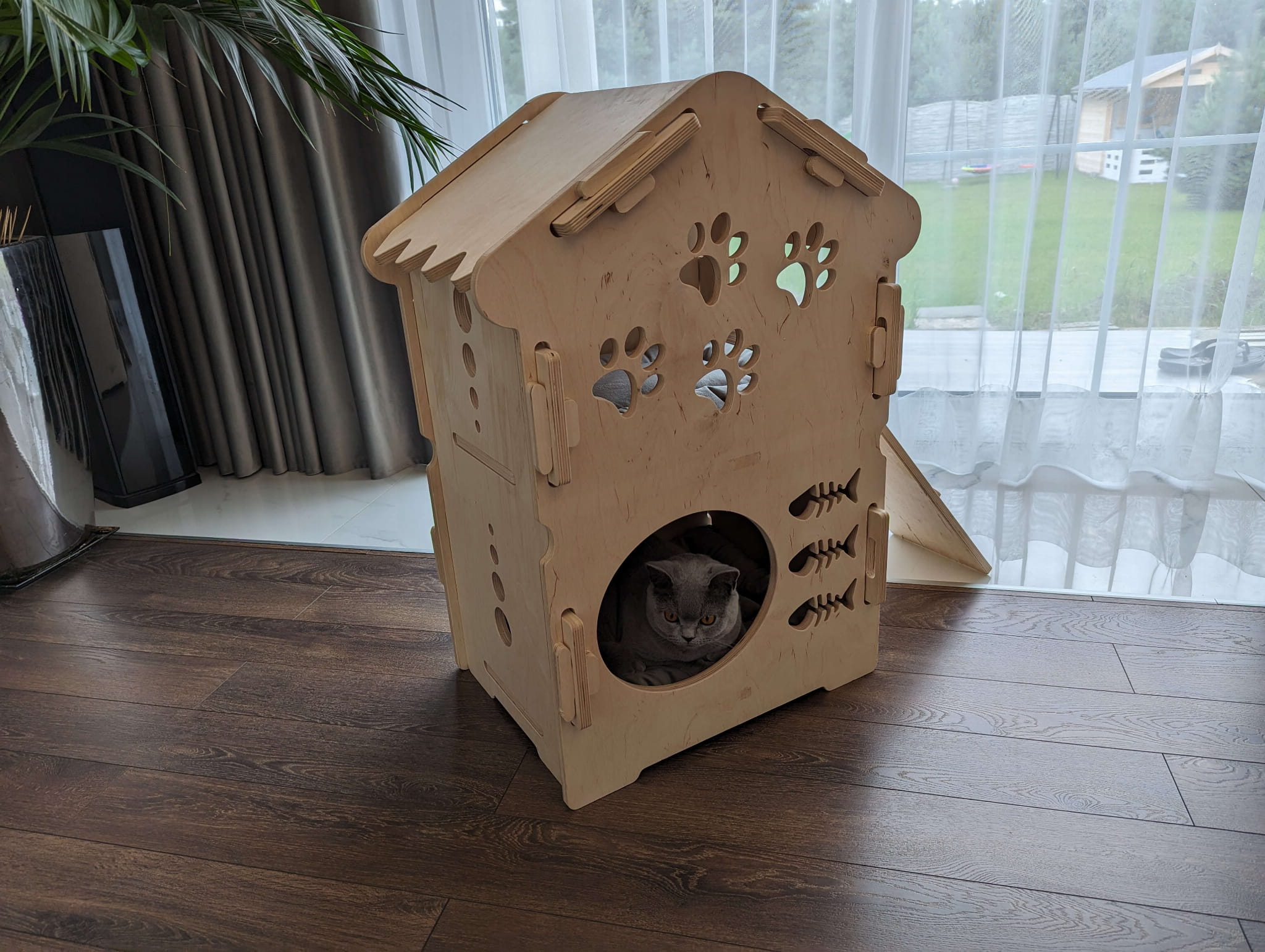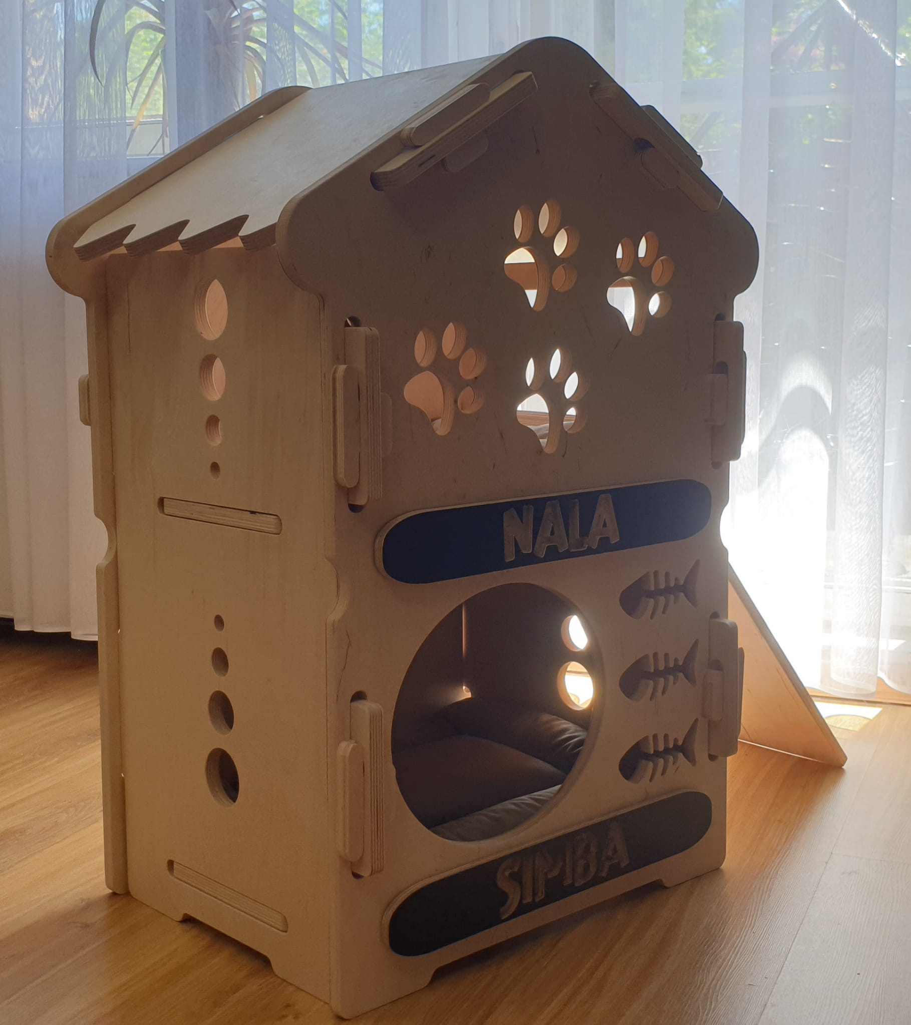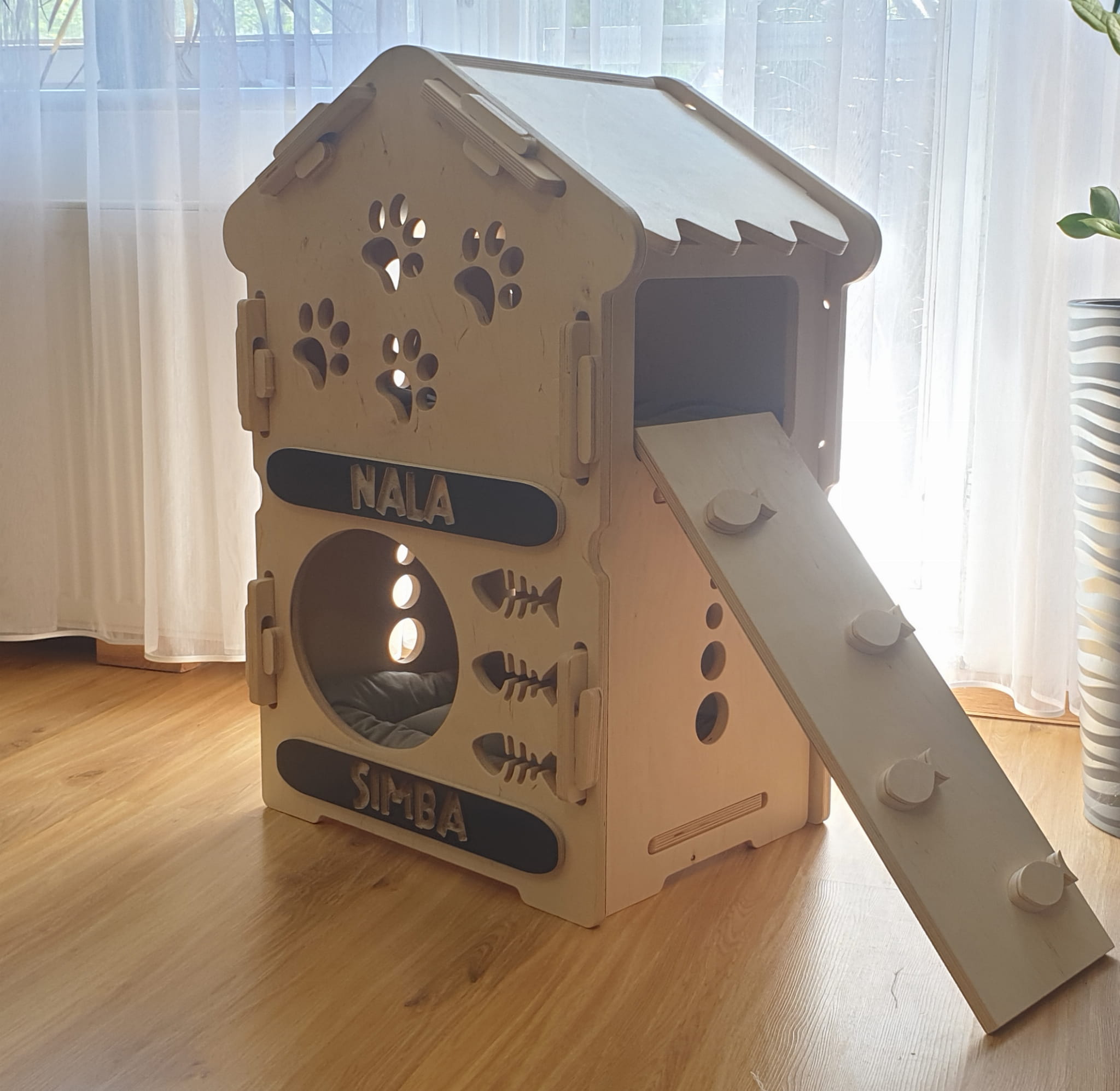 Dostosuj Drewniany Piętrowy Dom dla Psa, Kota czy Królika do potrzeb swojego zwierzaka, nadając mu indywidualny charakter. Piętrowe Drewniane Domki dla Zwierząt są nie tylko funkcjonalne, ale także estetyczne, dzięki czemu możesz stworzyć harmonijną przestrzeń dla siebie i swojego pupila. Dodaj personalizację, nadając domkowi imię Twojego zwierzaka, aby uczynić go jeszcze bardziej wyjątkowym!