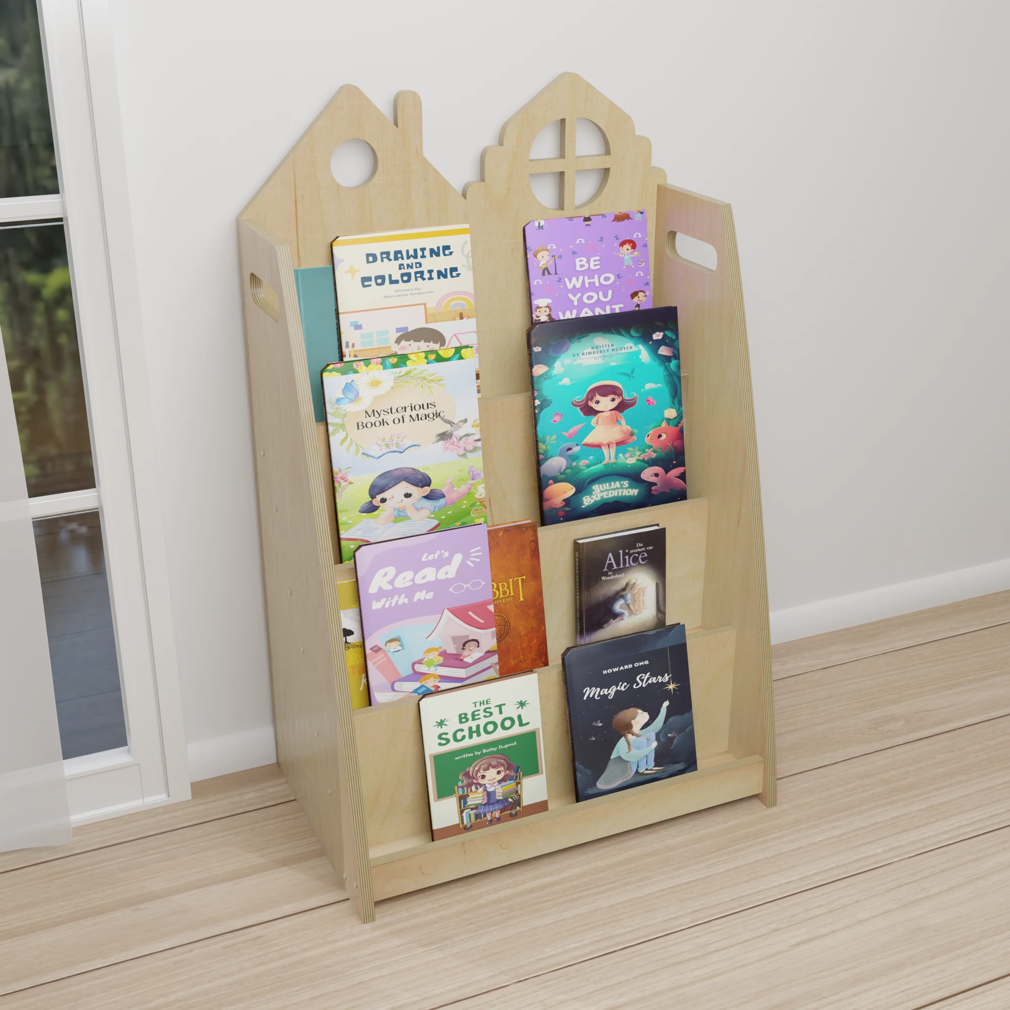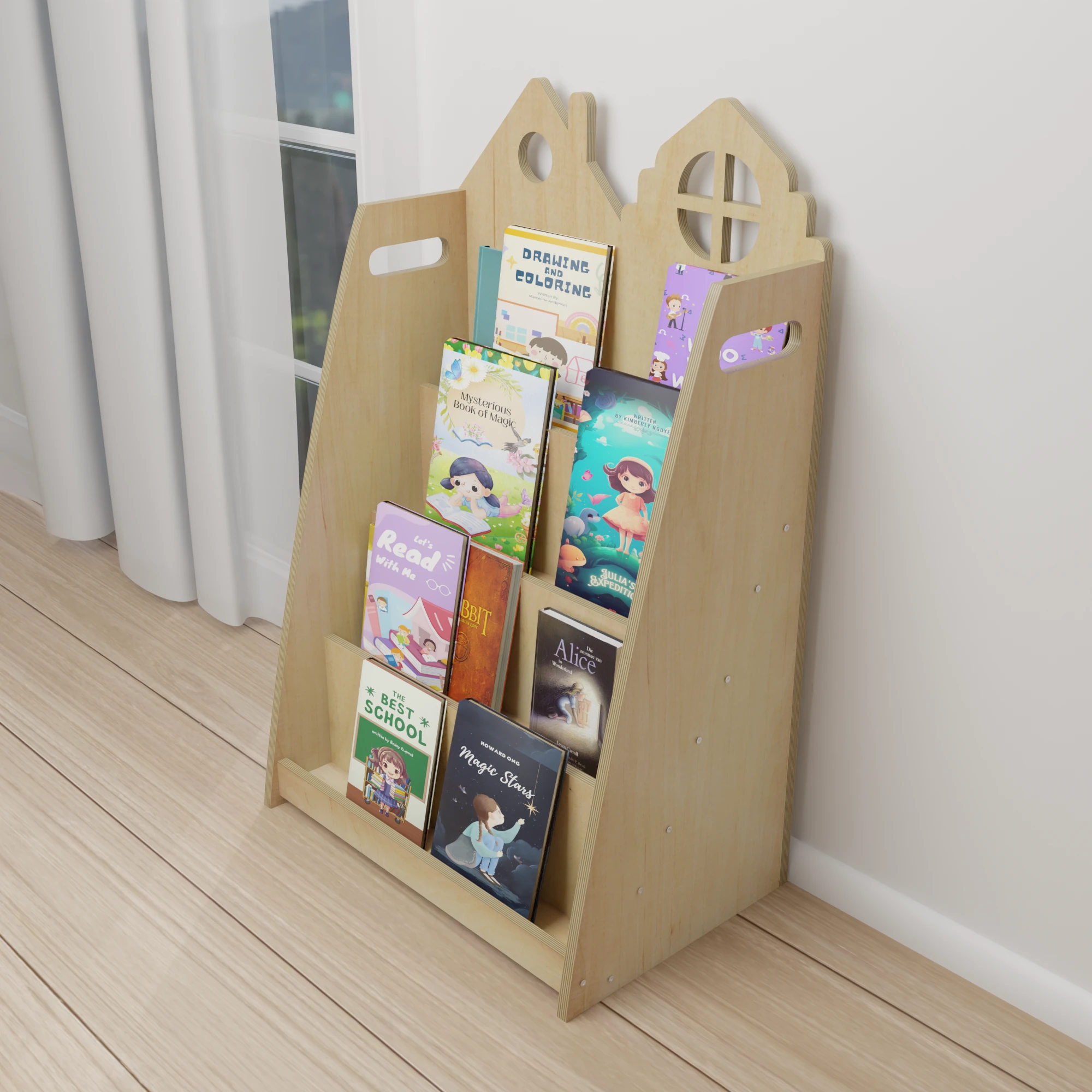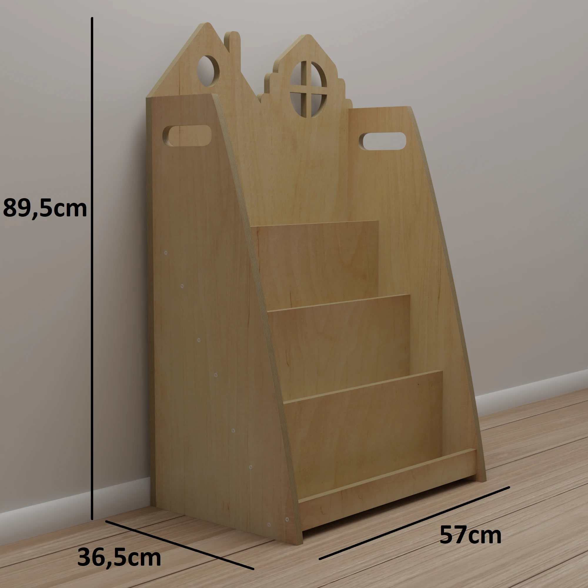 Prosty i nowoczesny wygląd półki – z dekoracyjnym wykończeniem w formie domków – sprawia, że będzie ona ozdobą każdego pokoju. Produkt wykonany z najwyższej jakości sklejki jest trwały i bezpieczny – to inwestycja na długie lata.