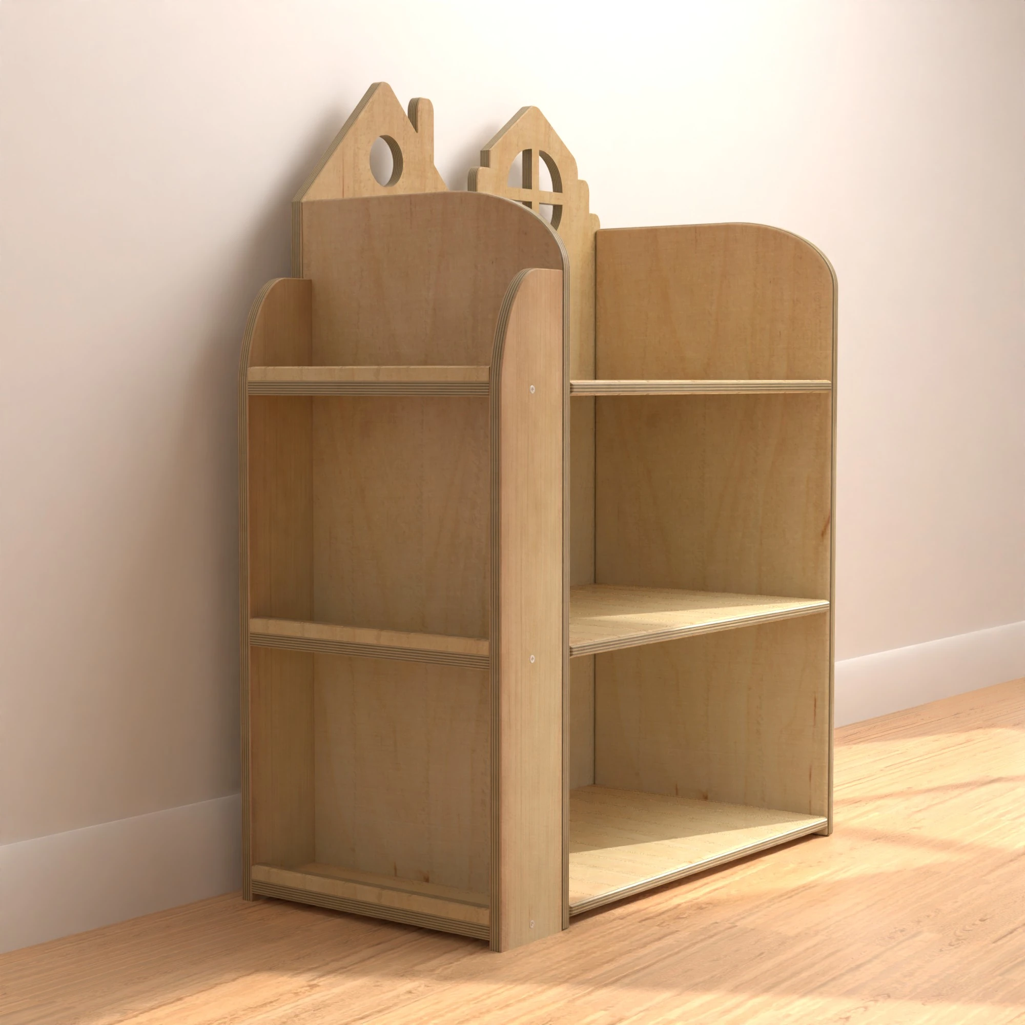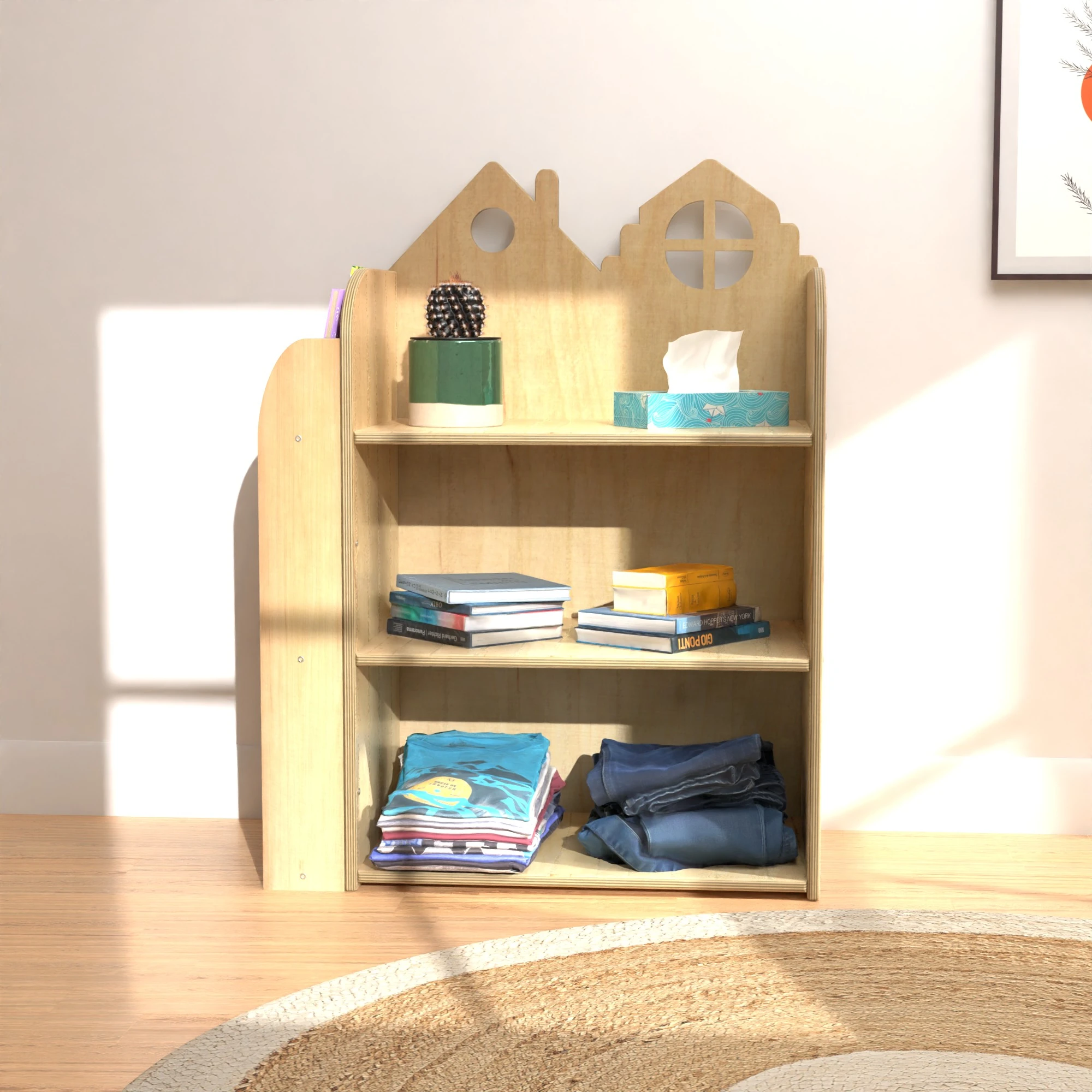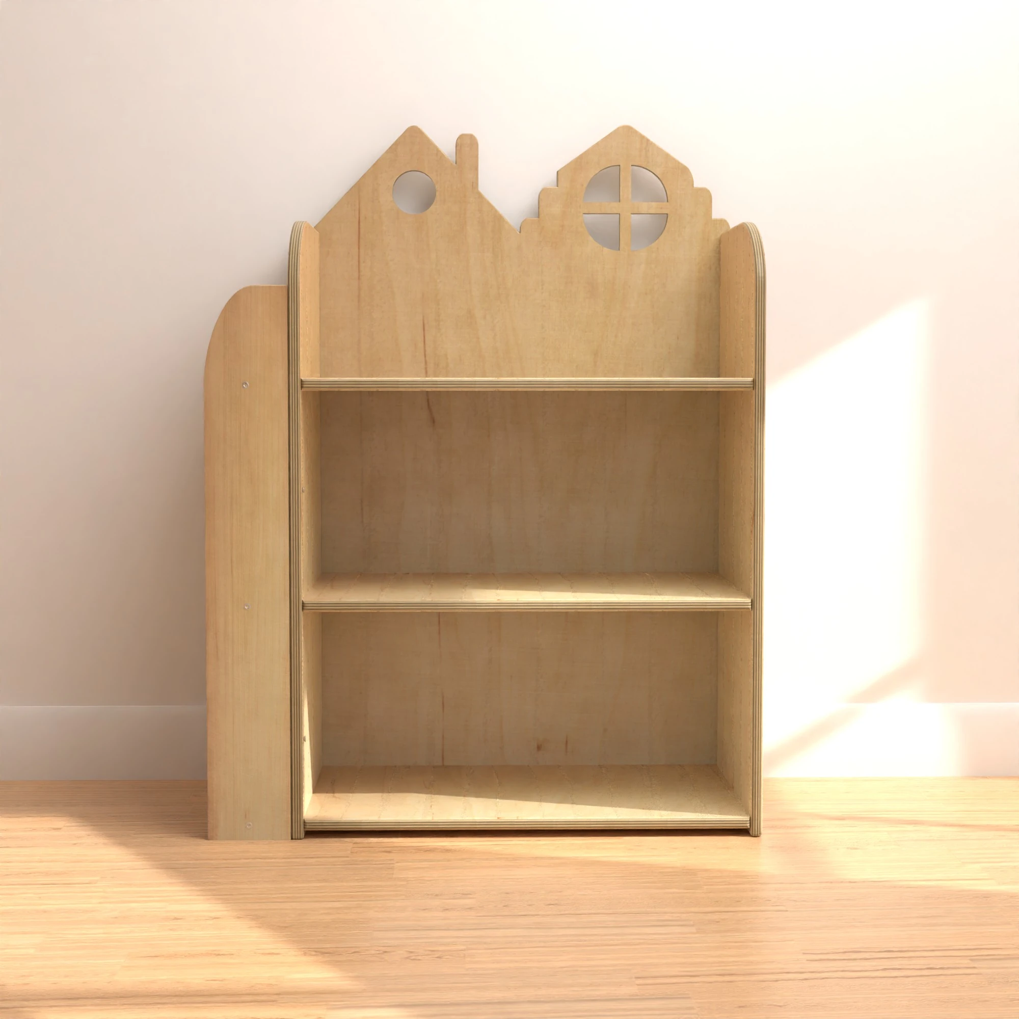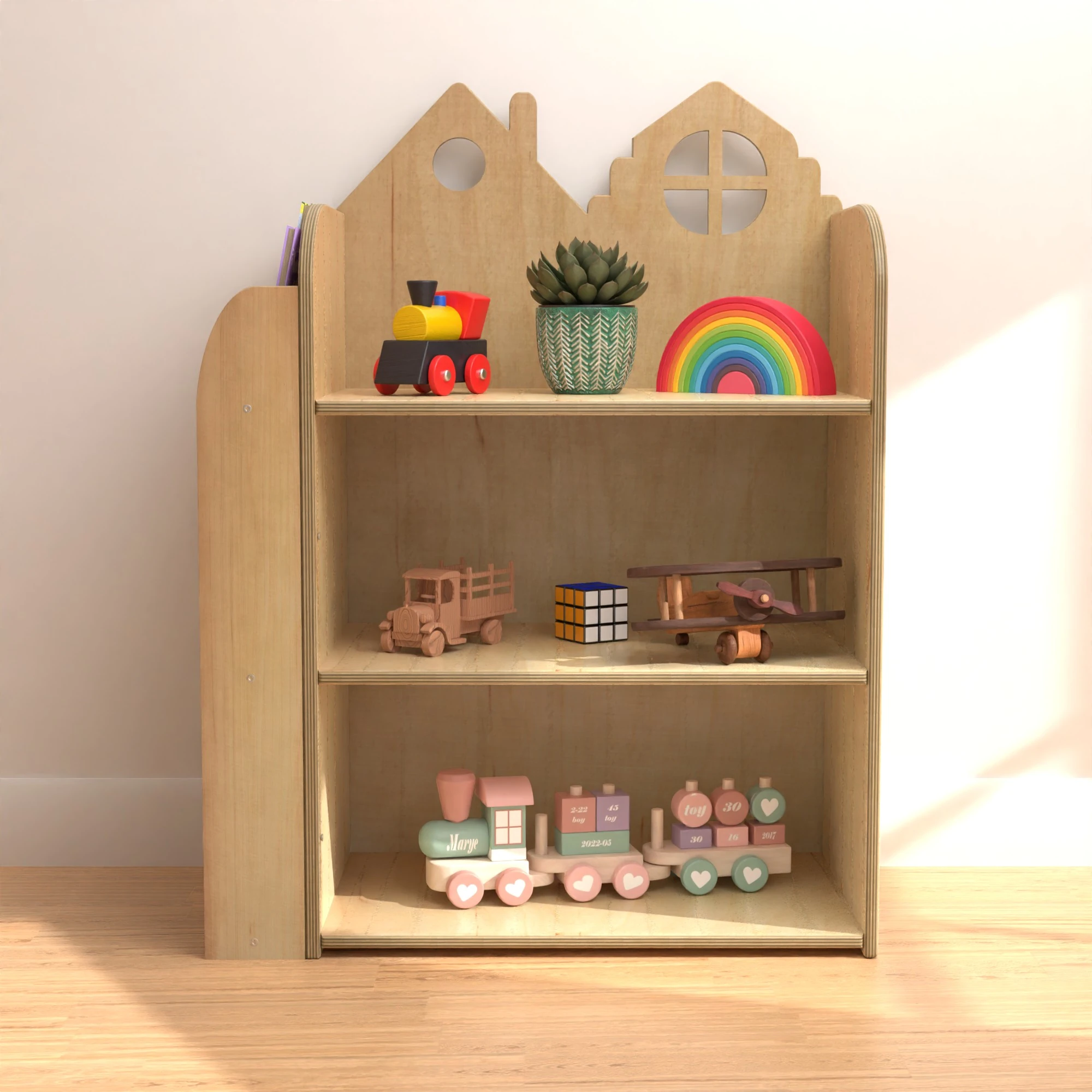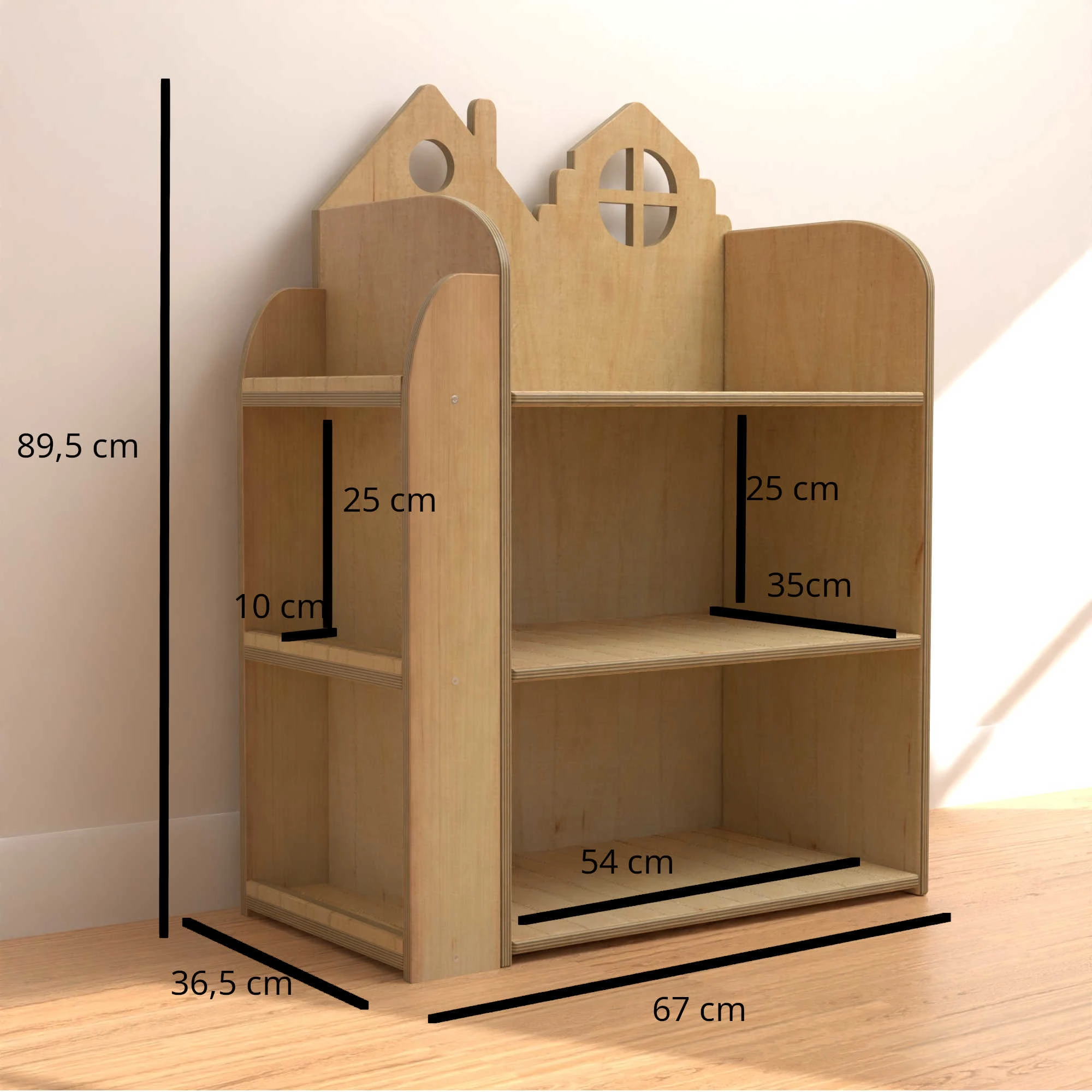 Szafka Montessori Domek z Biblioteczką – Drewniana Półka na Zabawki i Książki do Pokoju Dziecka | Magic Trends Gallery