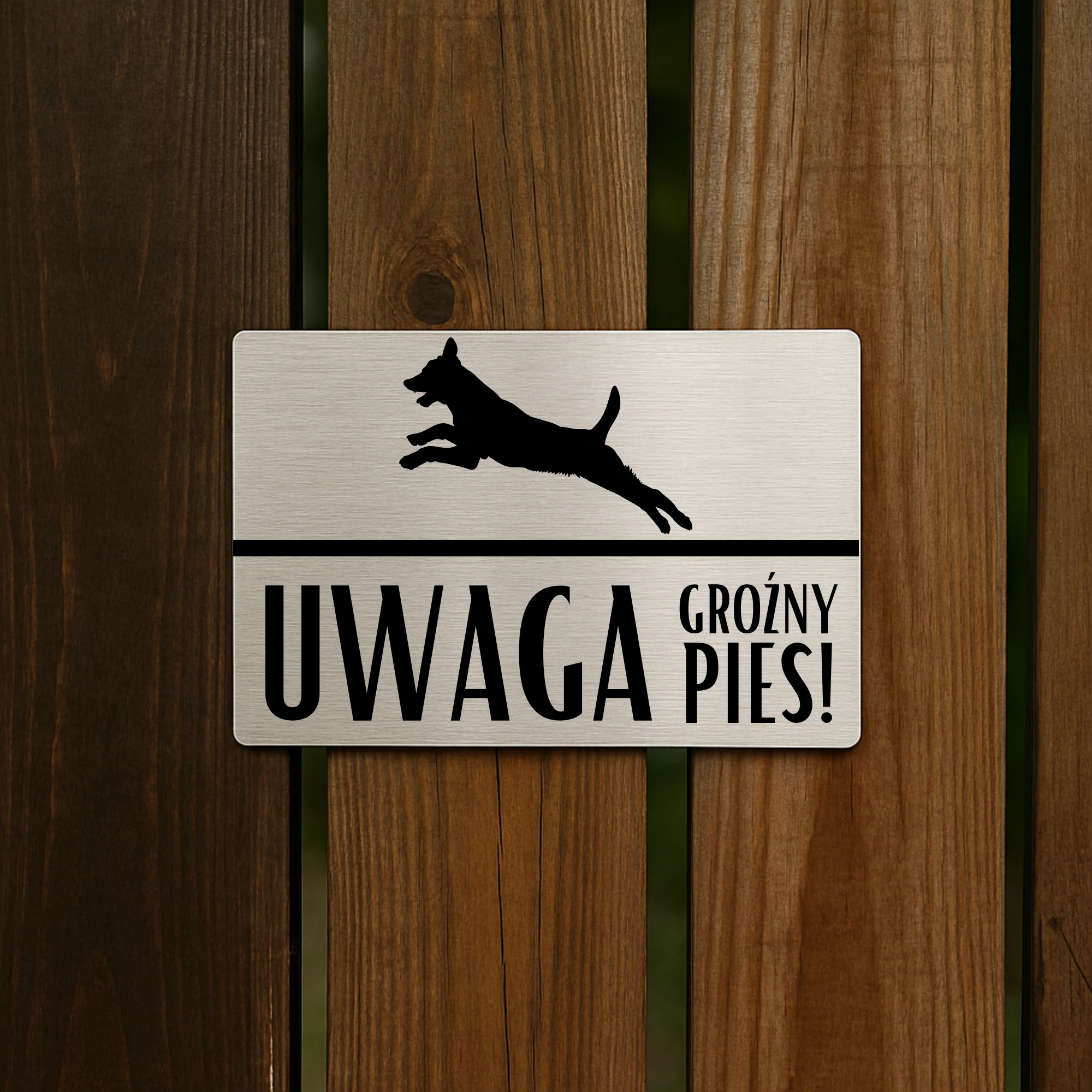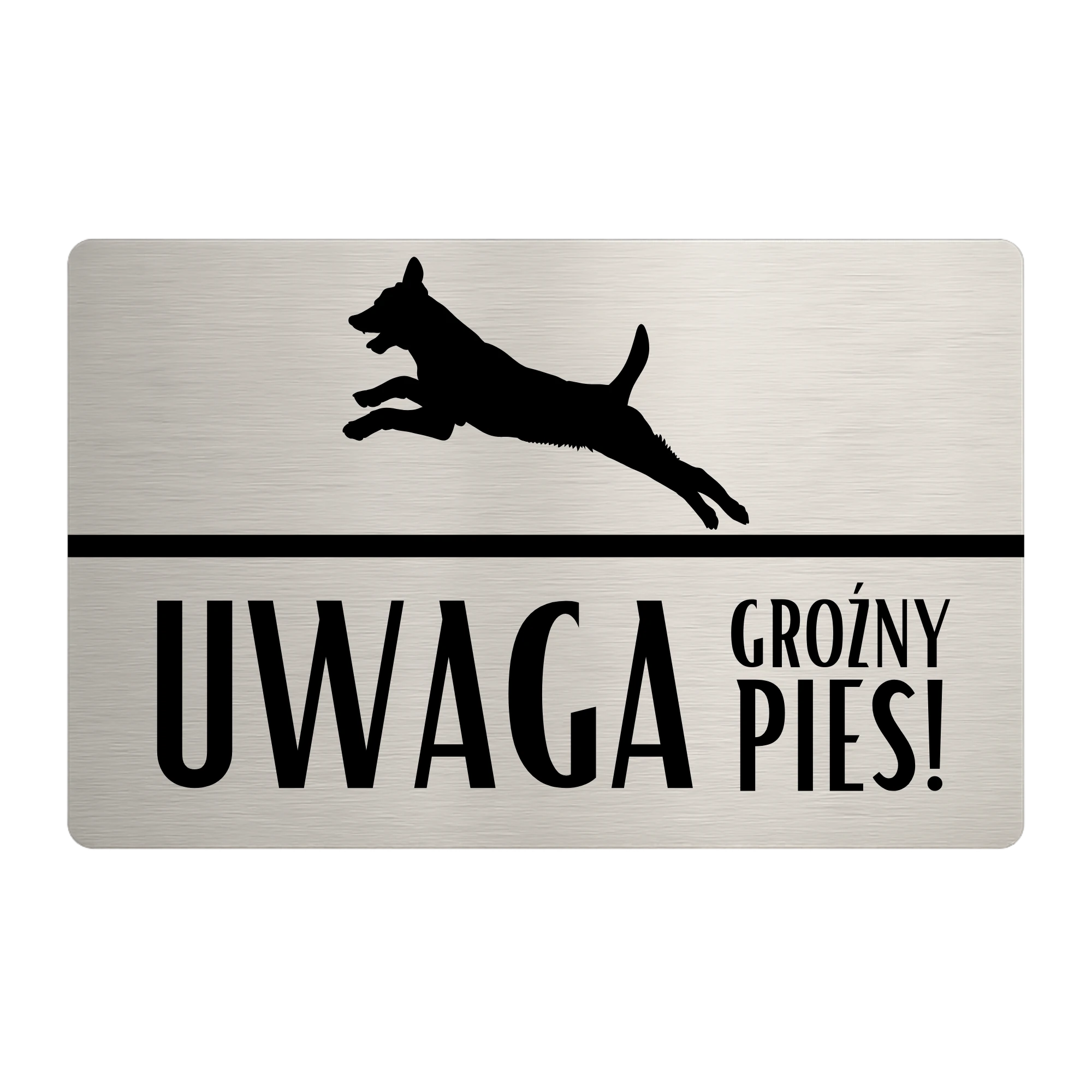 Tabliczka „Uwaga Pies!” – wzór 3 – stal szczotkowana – Magic Trends Gallery