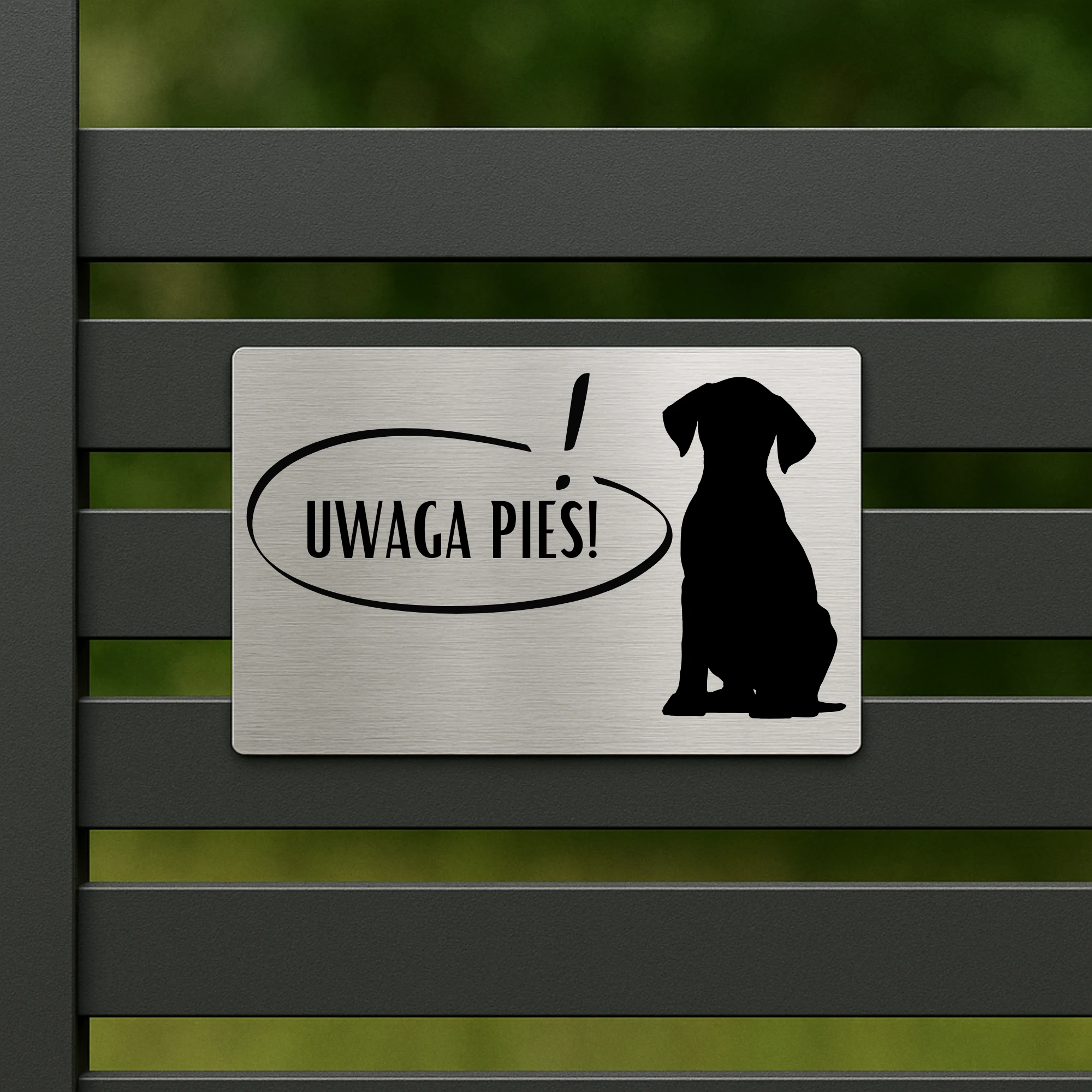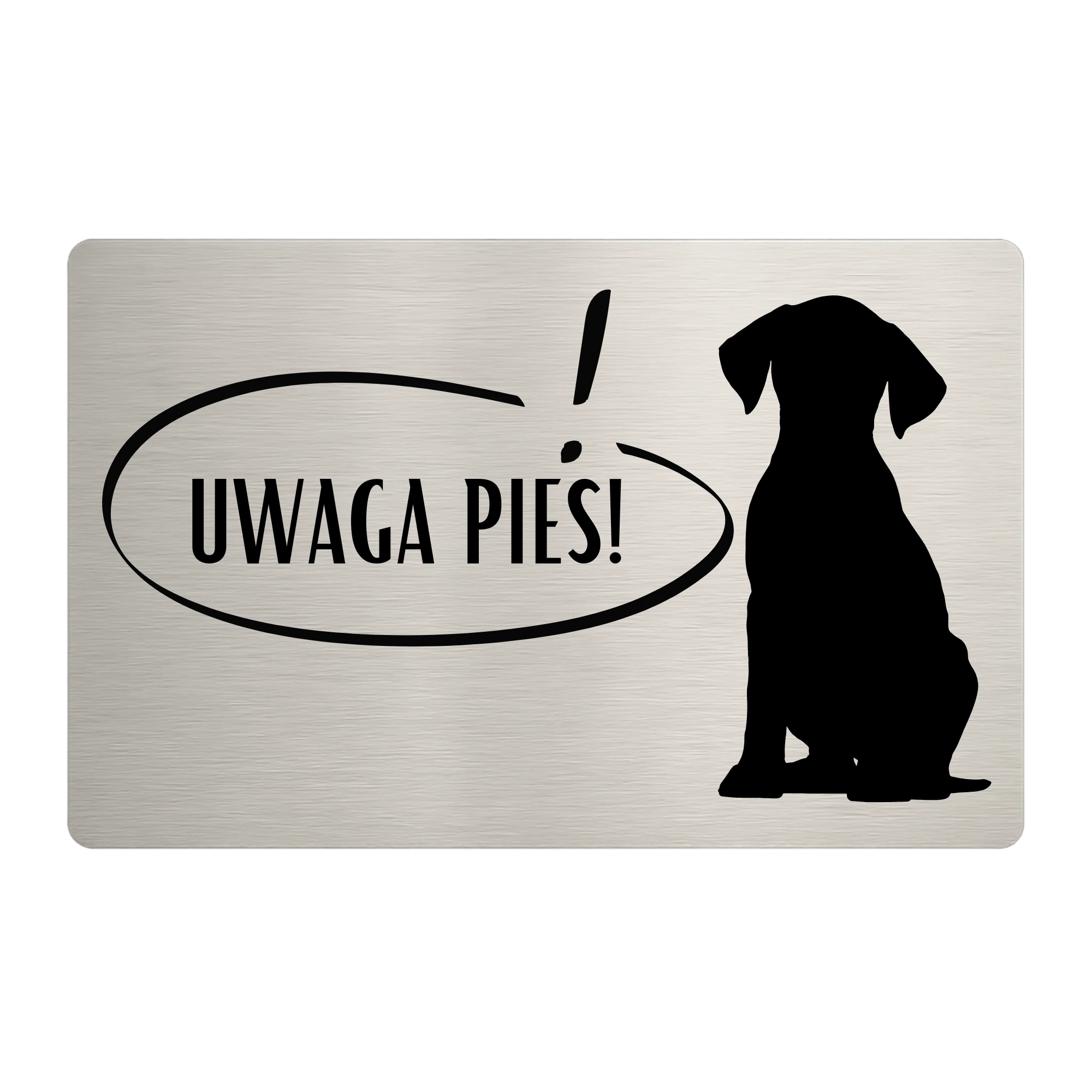 Tabliczka „Uwaga Pies!” – wzór 4 – stal szczotkowana – Magic Trends Gallery