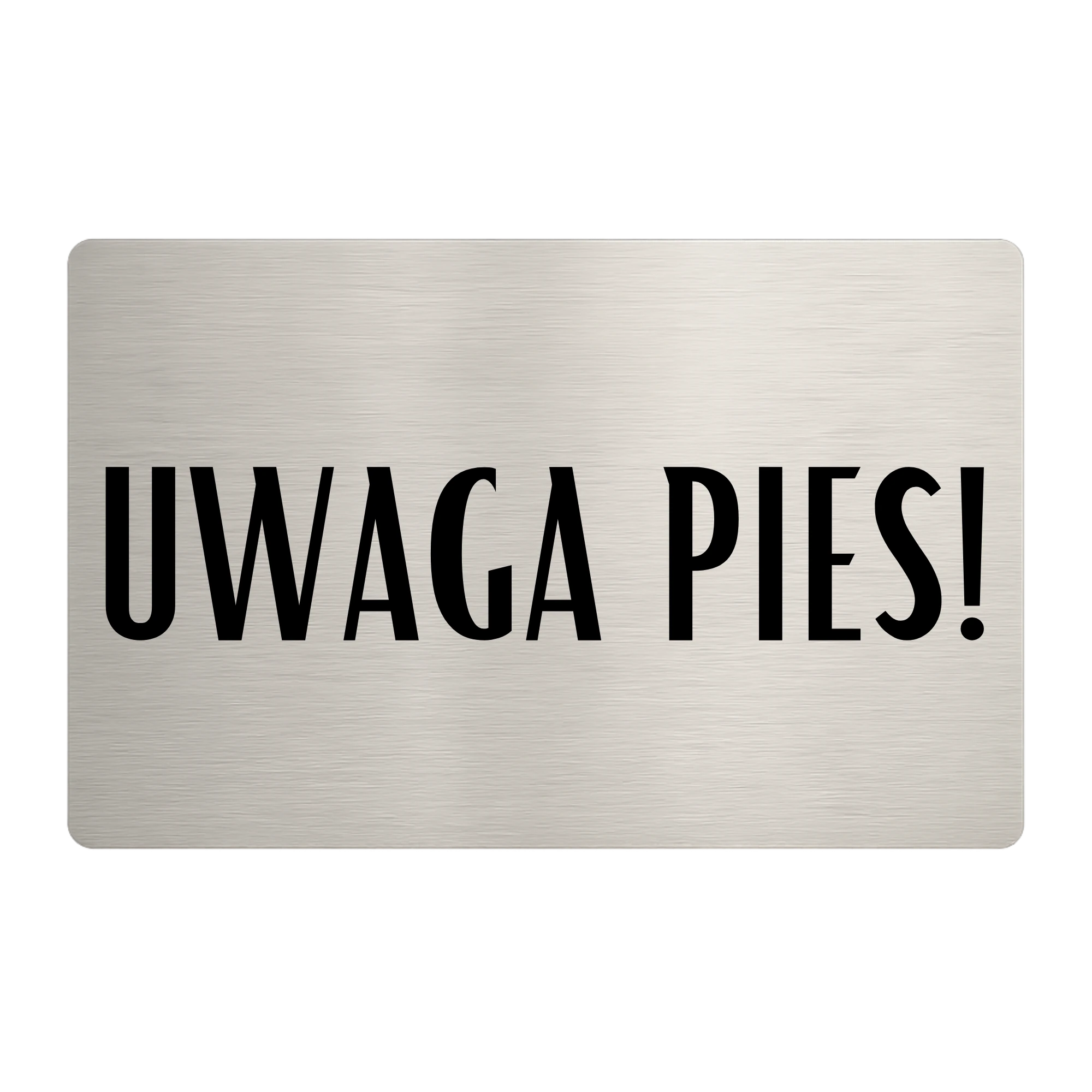 Tabliczka „Uwaga! Pies” - wzór 8 - 24x16 cm - dibond stal szczotkowana | Magic Trends Gallery